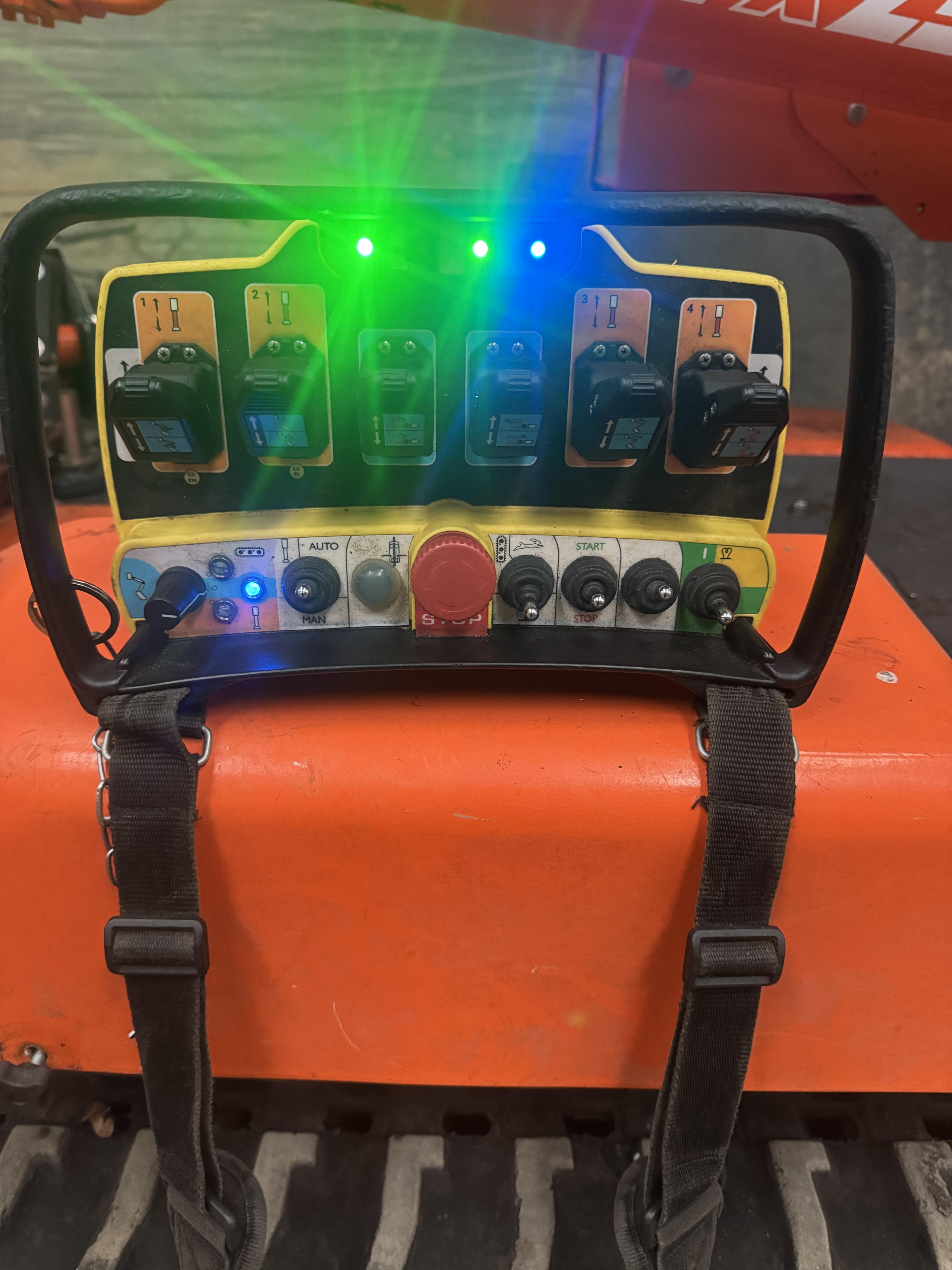 Comes with a radio control remote which is an optional extra but well worth it as it gives you some much scope when getting the machine into jobs.