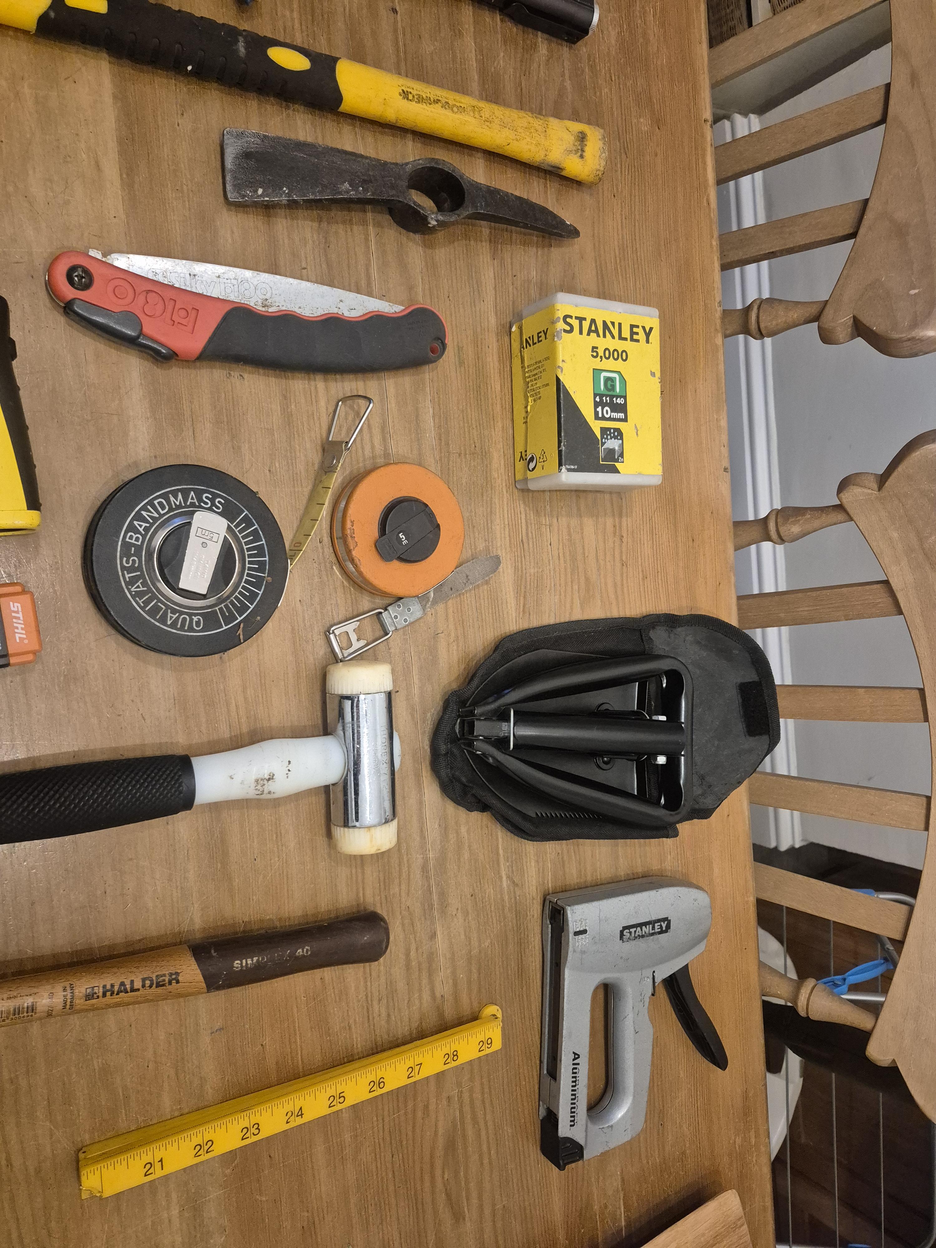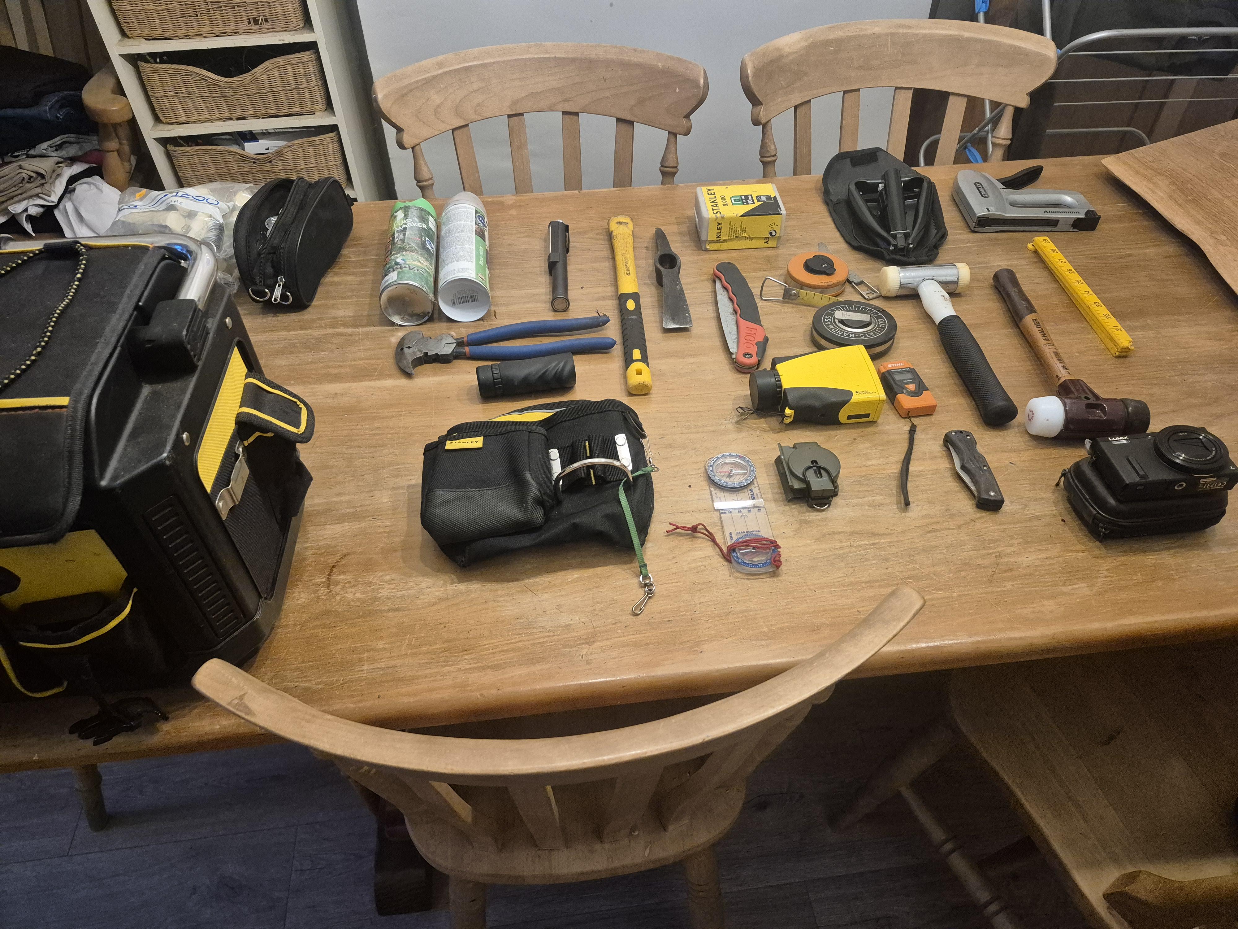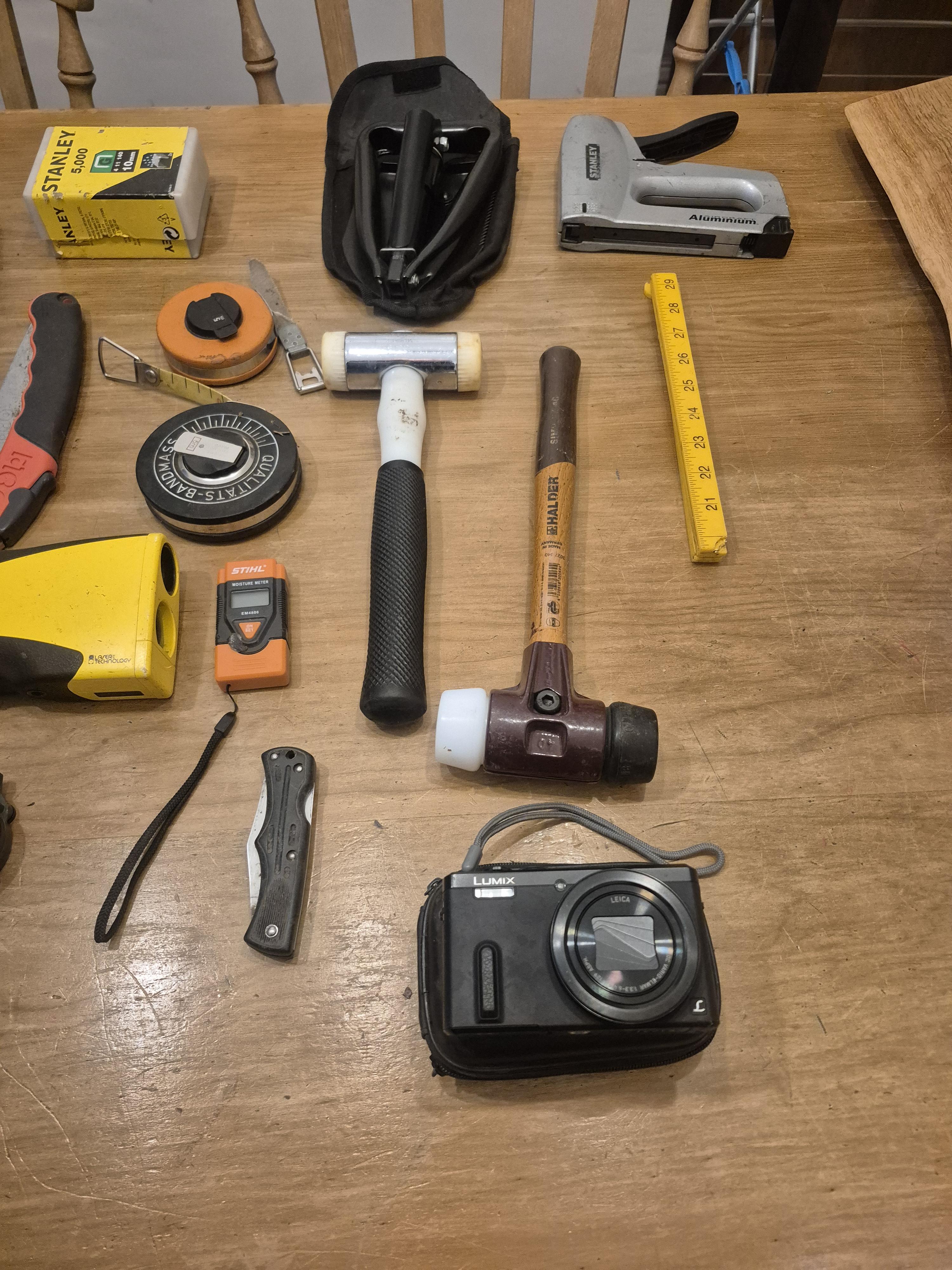 Tree Surveying kit. Clinometer, loads of tags, sounding hammers all you could ever need to start out. Even a big bag to put it in.