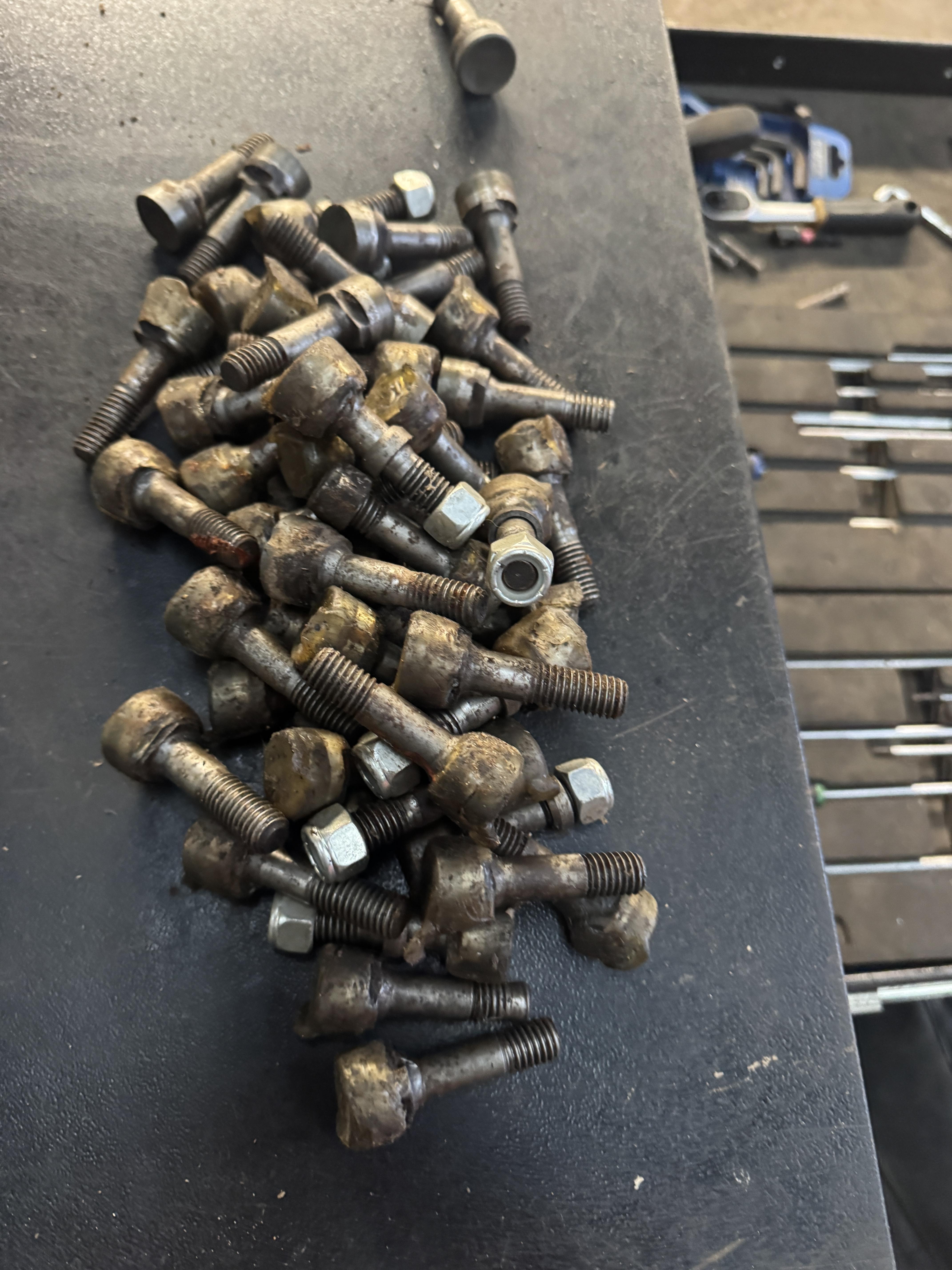 9 brand new teeth and a pile of teeth that have just been sharpened.