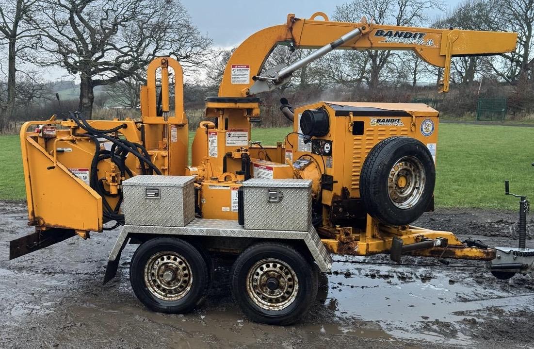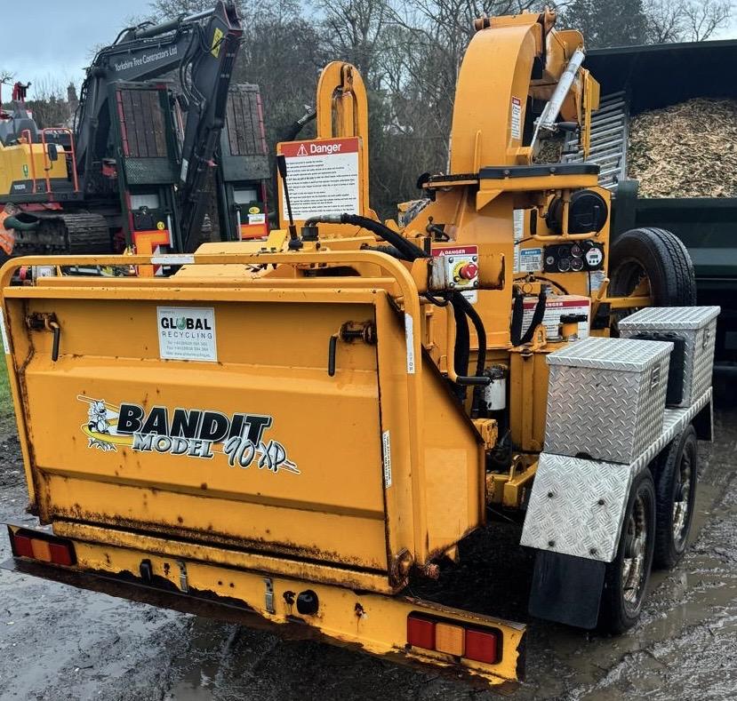 A well-maintained Bandit 90XP woodchipper, with just one owner from new and specified with a bespoke twin-axle build for enhanced stability and towing performance.