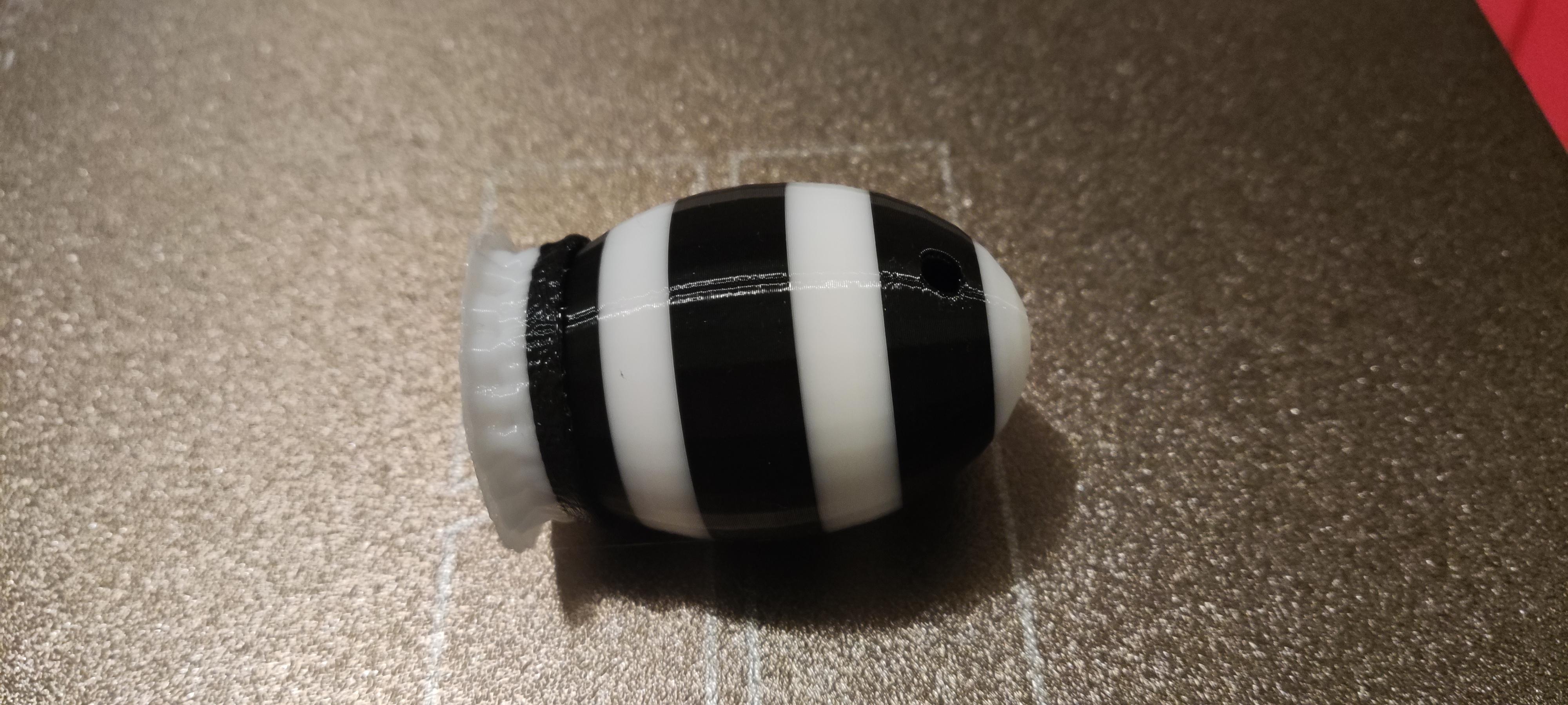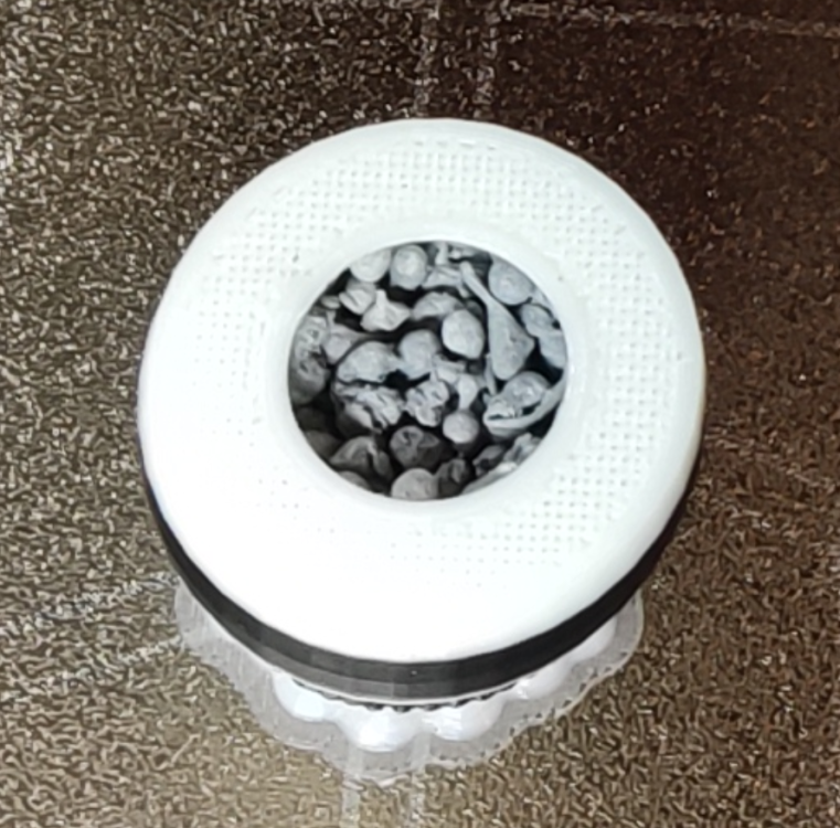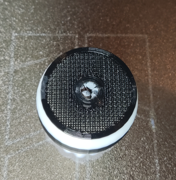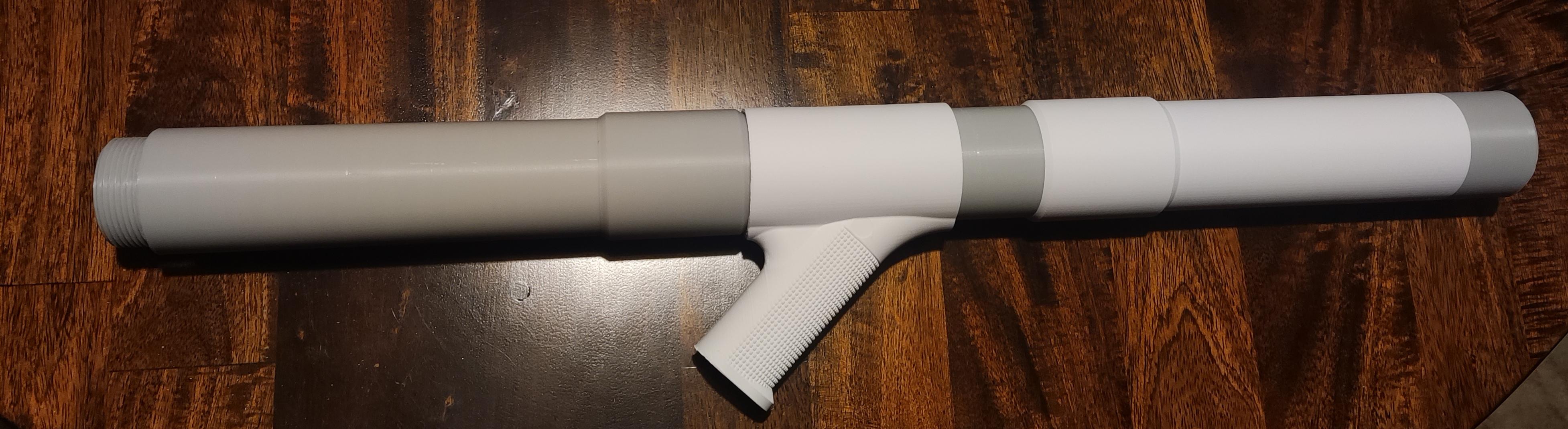 The launcher tube currently looks like that but I havent glued the sections yet. Made a lead filled throw weight for it. TPU so its flexible, its not going to shatter. Only had black or white, so used both. Not as heavy as I wanted. I'll adjust the size to get more lead in and print a few more. First time making lead shot, should have done it before I started it printing!