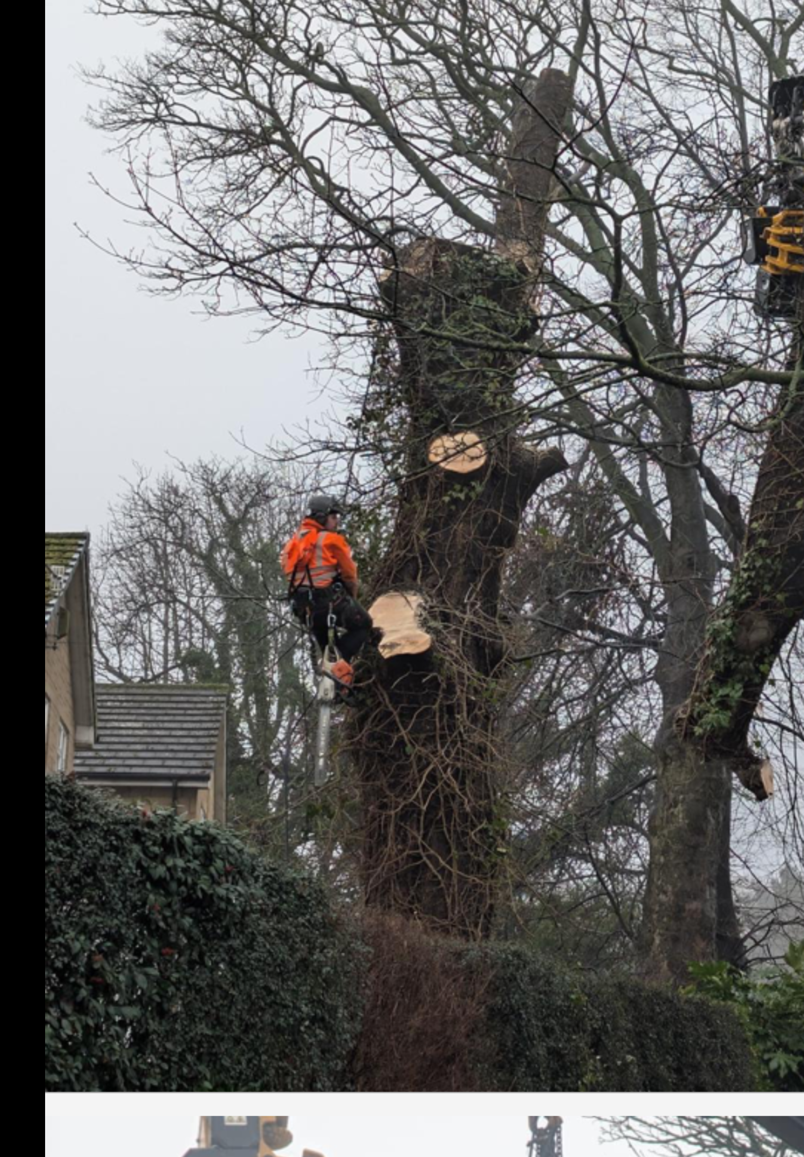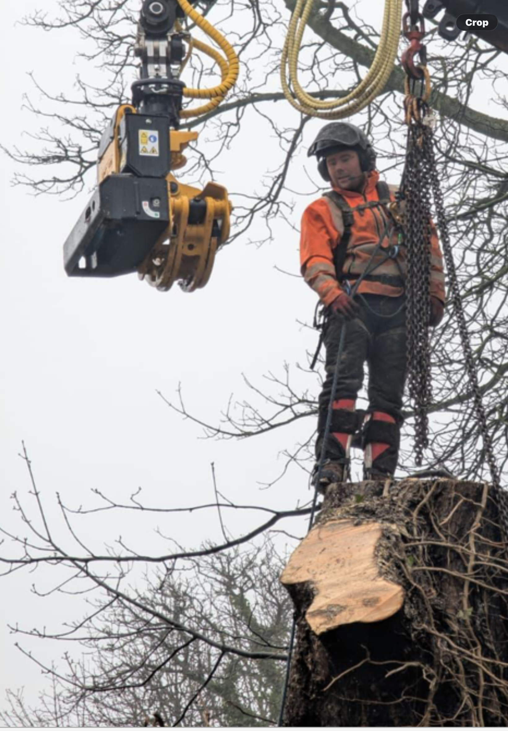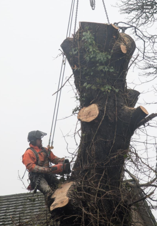 My nephew Rob freelance/contract climbing for a firm in Yorkshire. Grapple saw dismantling a sycamore, then doing the timber with slings etc. Raining most of the day as well.