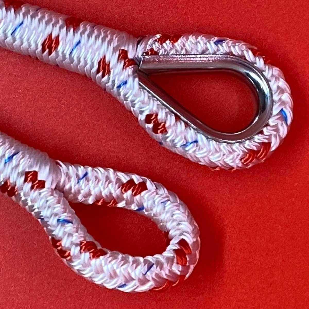 I phoned Marlow ropes technical department and learned some interesting detail (my rope is a Marlow Draco, so seemed the best choice). He gave a straight no regarding the idea that it helps with shock loading, but had an explaination that works for me. For a splice to give maximum strength, the splice throat angle should be small, that means the splice would be 3x or more, the size of the largest connector used in the eye - a very loose fit. He said with climbing lines, its a compromise, people like a tight eye and it meets the EN standard, its good enough but it is not the strongest. So, experienced riggers, what is the maximum size item that you would clip to a rigging rope? 70kN 12mm steel biners exist, so it still seems excessive.