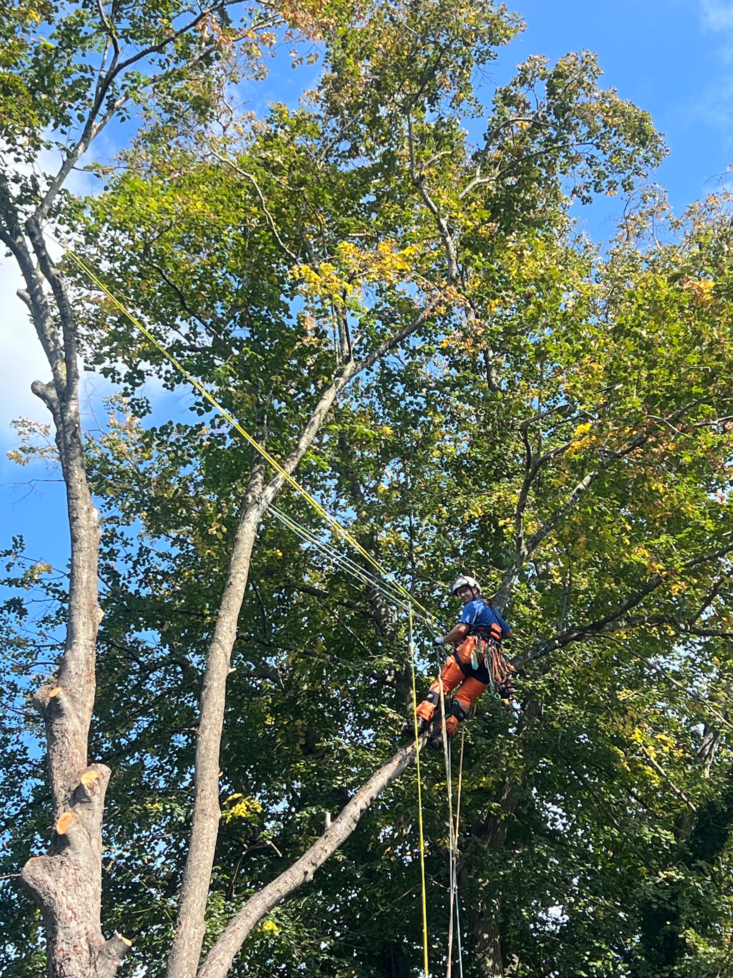 This tree is in a relatively small garden and grows over the two neighbouring gardens. At a few meters up it splits into 5 or more stems, I assume it may have been topped when it was young. Its a nice tree but in the wrong place. I recently suggested to the owner that it is reduced quite hard, 30-50% off the upper canopy but to leave the lower as is. Before stepping up into the union I noticed some bare cambium and reaction wood growth? Theres been strong winds recently. In Nov 23' I removed quite a large low branch that was going across to the neighbours. He was aware that large cuts on birch are not ideal. We noticed it did not seem to be callousing and had a brown weep, so I went up to inspect it. My original cut was not quite to the branch collar but it has been callousing all around hidden under the bark, it was a steeper angle so I trimmed the stub back. I got a face full of wet vomit-like soft rotting wood chips. If the soft rot progresses I think it will not take long to compromise the 5 way union which is not far above. I am unsure to suggest complete removal and to replant something else. If it became unsafe to climb, a mewp would not be able to get anywhere close and would need to be a large skylift type that can span 4 gardens from the road, if it could even fit down the road, at greatly increased expense. Should it be removed or reduced and how much?