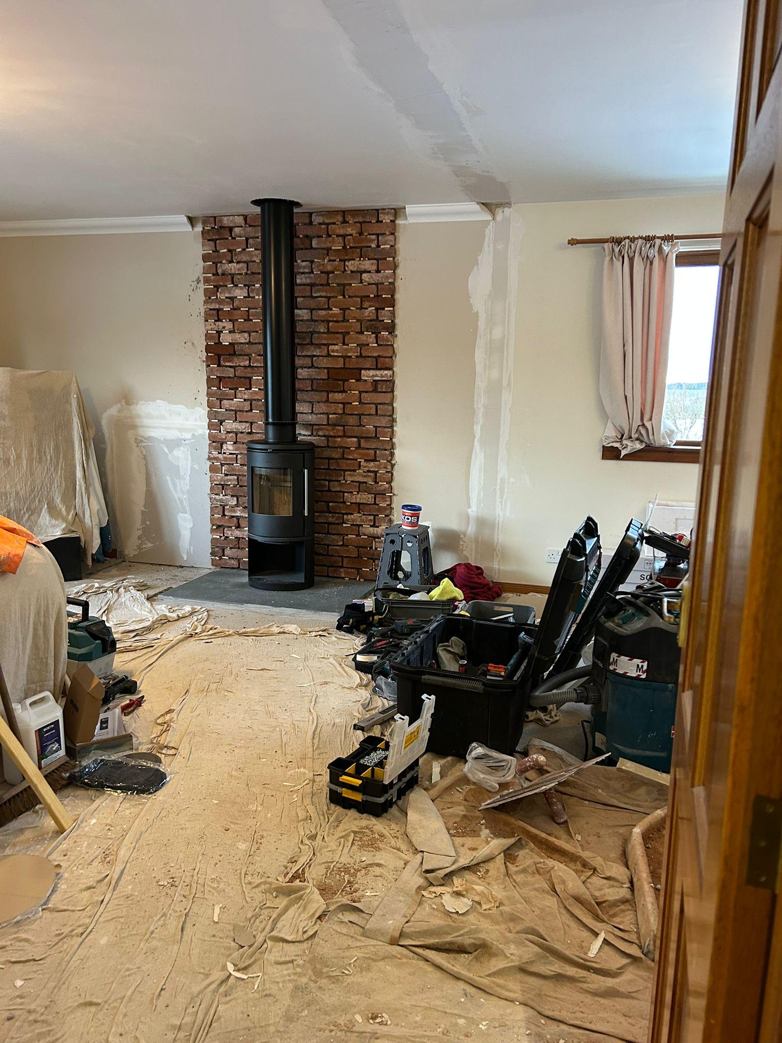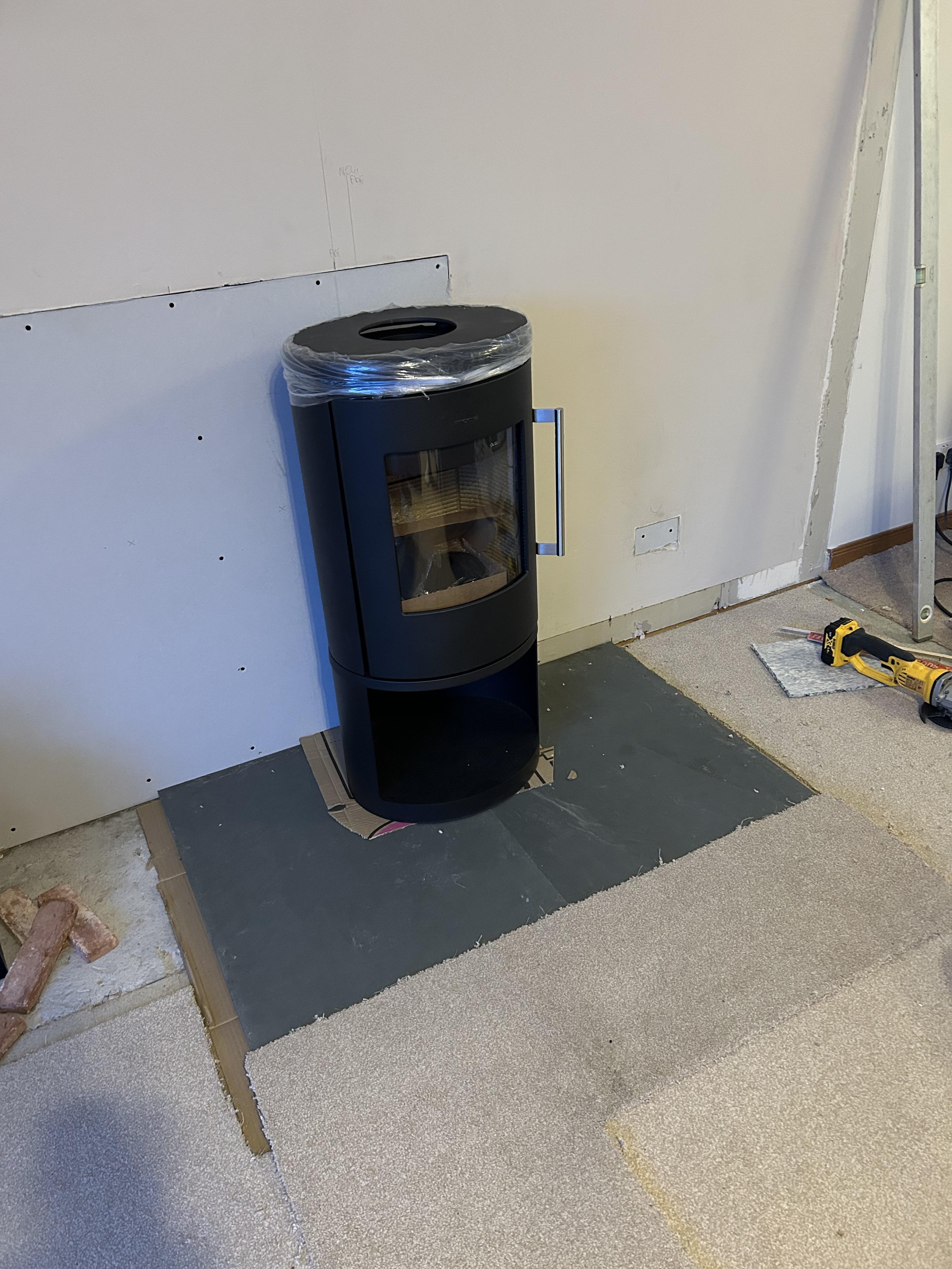 Nearing the end of fitting a new Morso 6143 free standing 5KW stove into the new property, we had the same stove in the old place and were more than happy with its performance. Had to remove a manky old polluting coal fire and seal up the fire place, few late ones over the holidays but looking forward to lighting it up tonight, bit of pointing etc on the brick slips should see it completed.