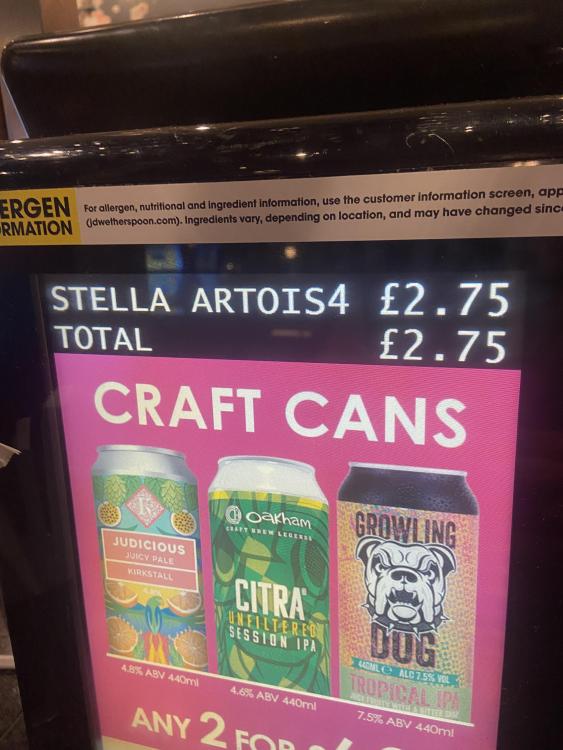 Think I was about £18 last night for beer, wine and a couple of cans of coke.. last time I was in a 'spoons, the beer was a reasonable couple of ££.. which does make you wonder if they can do it why are the rest so much more. However... 30 whatever years ago in the big market you could get a pint for 50p, made the £1 a pint taste reasonable.. but at the £1 a pint, double the price every 10 years for inflation? - 1 (0 years), 2 (10 years), 4 (20 years), £8 (30 years) a pint might actually be the going rate. We are just bitter and twisted (sorry, an intentional beer pun)