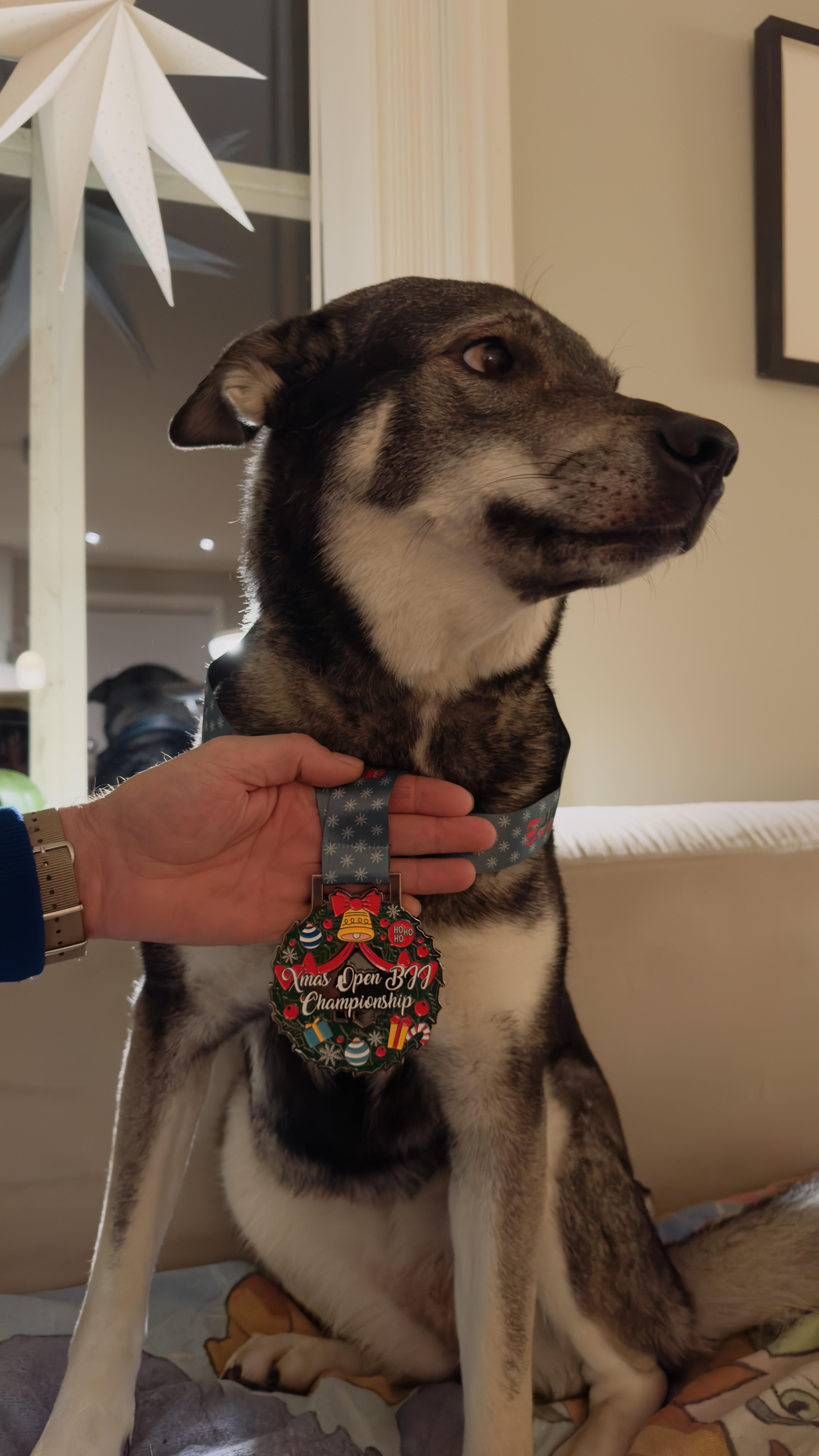Mind you she was looking quite proud of herself as she wore the Silver medal my youngest son won today at a BJJ competition in Oslo. 😜