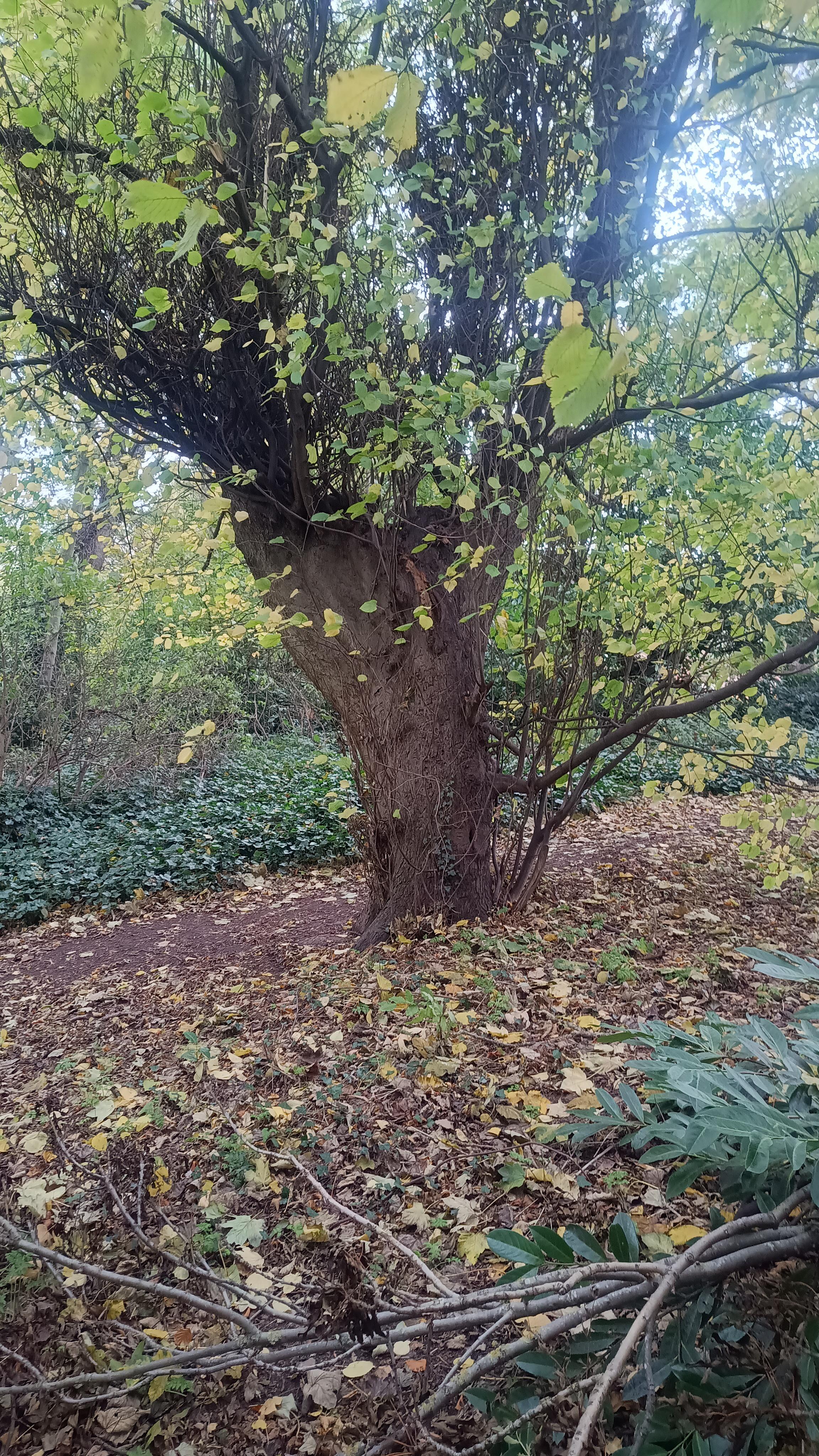 Lime tree in the local park. I can only assume it's fasciation on steroids. Clipper lighter for scale. -