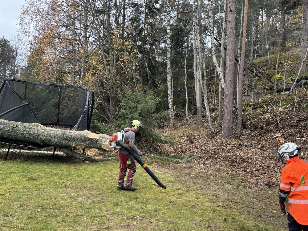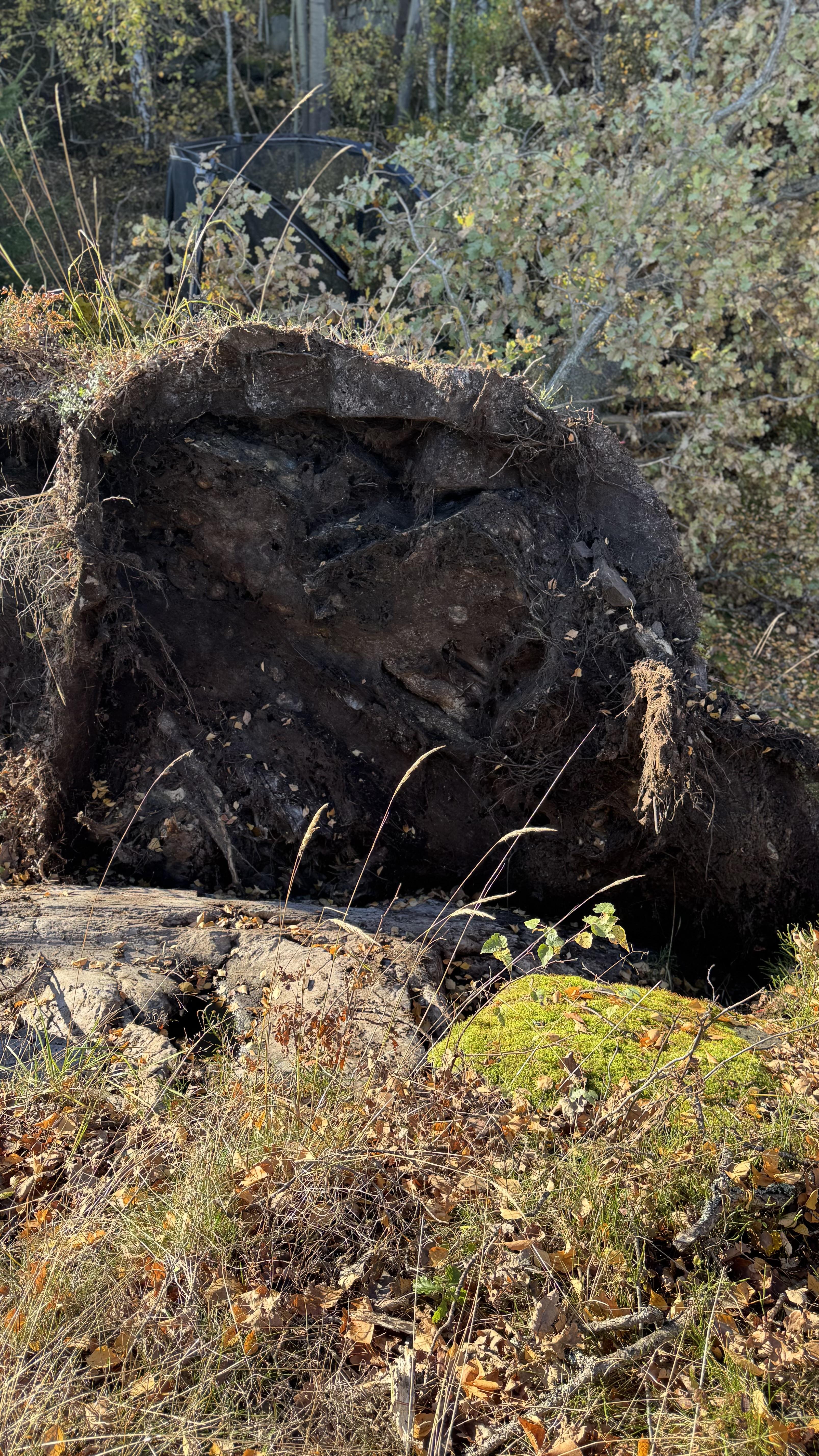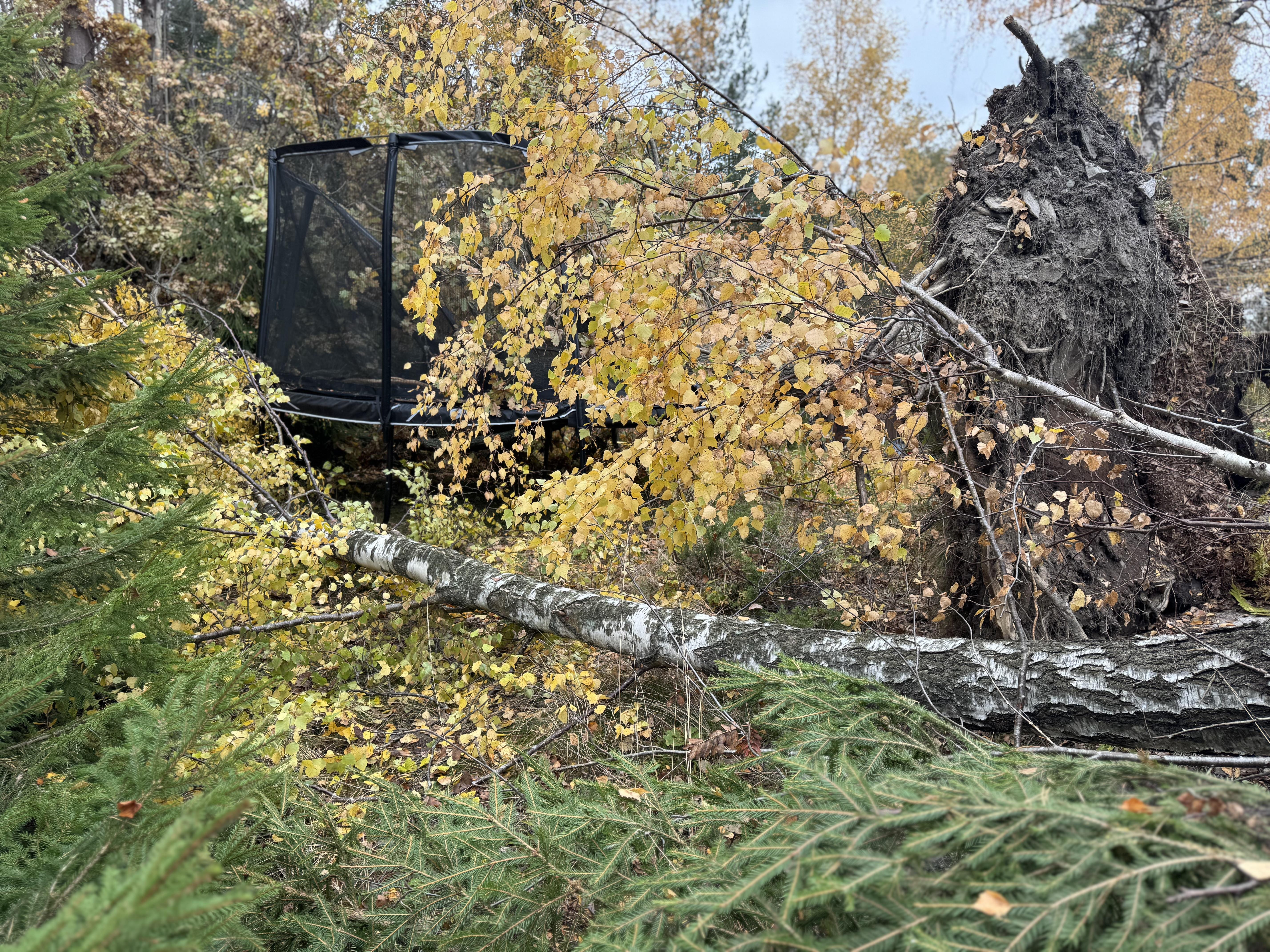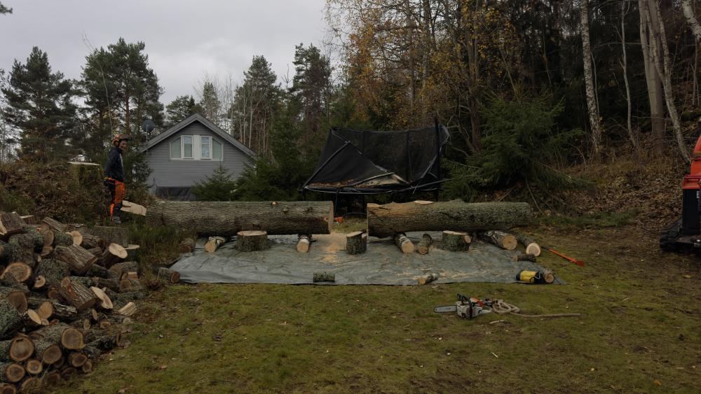 A storm blew through a couple of weeks ago. Finally got round to a job next door. Decent sized Oak went over along with a birch and pine. Spattered quite a few smaller trees. Tension and compression cluster F! Trampoline took a hit. The schools here do a work day and you pay a small fee that gets donated to charity. So my mate brought his 14 year old along as did I. My oldest son work with me during school holidays so he came along as well. Many hands to drag and shift logs. Got a fair bit done and then setup for tomorrow after we winched the root balls back into place, for milling the bottom 6 metres.