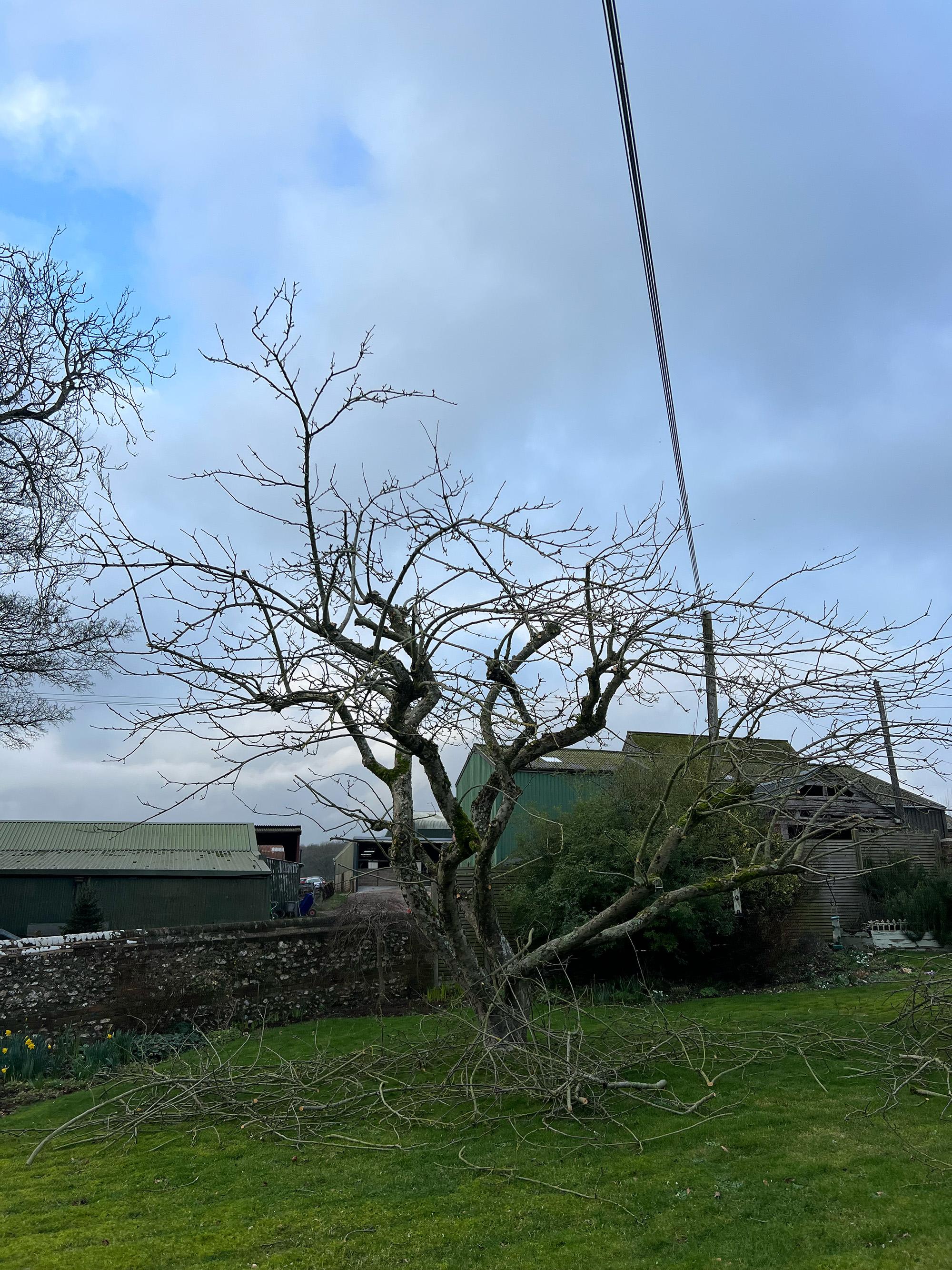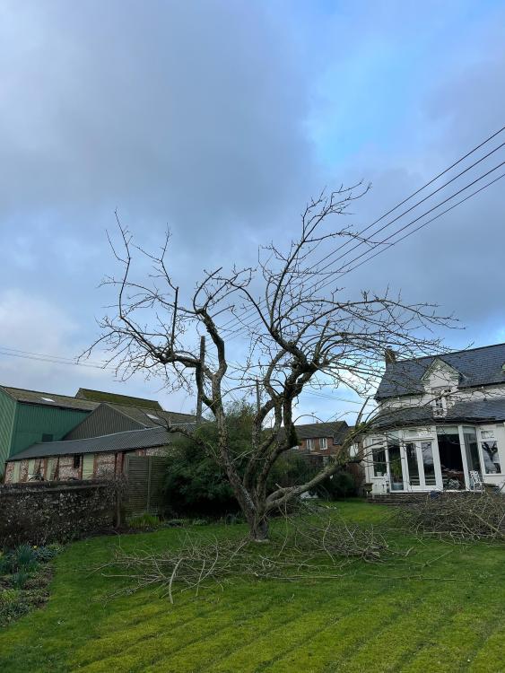Here's where I got to with it today—having stepped back and had a look there are a couple of branches I'd like to remove to reduce the height just a bit more but overall I think it's looking ok. My goal was to keep it looking NICE as the focal point of the garden and to also take off what felt appropriate and see how it reacts over the next year as per @Steven P's good advice! With that in mind I also wanted to begin the process of making the apples easier to reach etc. I do worry that I took off too much but it was so cluttered in there that it felt right to open it up in this way. Good day, ghastly drag at the end. Thanks for all the advice.