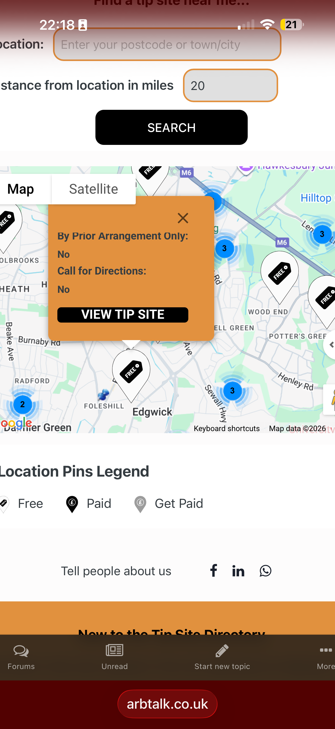 Hi i am trying to use the tip site section on arbtalk. To search fkr sites to tip logs too. But when I try and click on the blue circles it comes up with an orange box with some details for the tip site but no ways of contacting? Is this a service I have to pay for? any help would be appreciated.