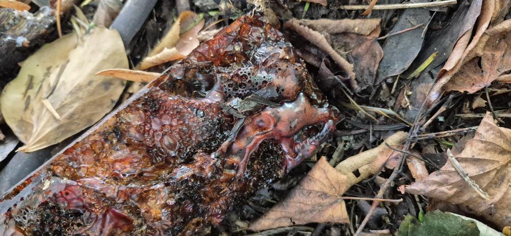Hello! I found this recently in Croxteth Park, Liverpool, UK, whilst walking my dog. I assume that it is tree resin that has formed inside a hollow branch or trunk? I also took a pic of the trees at the location where I found it. I've never seen anything like it and I can't find any information on the web to help me get more information. I would love to know more about what it is? I would really appreciate anyone's thoughts? It is about 10cm in diameter and about 25cm long. It is very light in weight. I found it on the floor, in the woods. There was no indication of what or where it had come from. There was nothing else like it in the general area. It looks like it has been clean cut at one edge, with equipment? Thanks for any help in advance. I have tried to research on the internet, but can't find anything. I probably don't know the correct vocab to get the relevant results?
