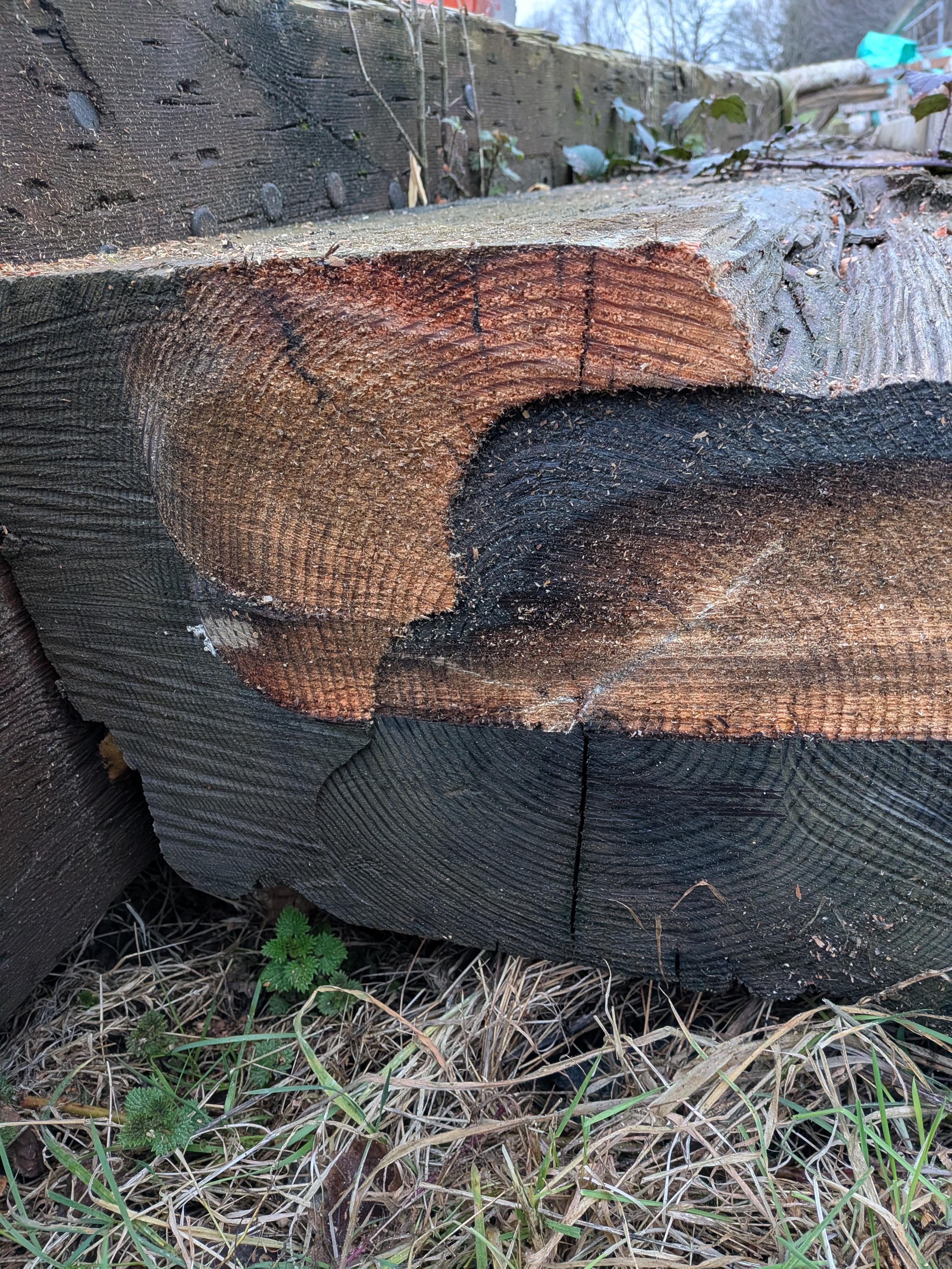I got about 30 seconds to brush a saw over the end yesterday. I can't say the smell was distinctive; not one that shouted Douglas at me but that is a possibility isn't it.