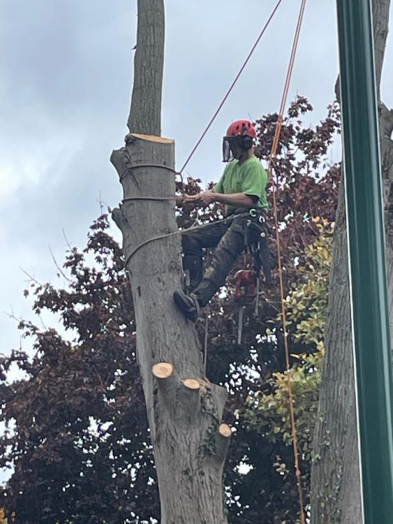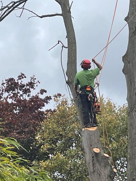 I rigged out the other small ones over the garage, the 3rd picture was done in two peices. Quite a lot had enough lean away to free fell it. VID-20251008-WA0003(1).mp4 I was a bit annoyed that the stem missed my carefully positioned brash pile, big hole in the grass but easily fixed.. VID-20251008-WA0005.mp4