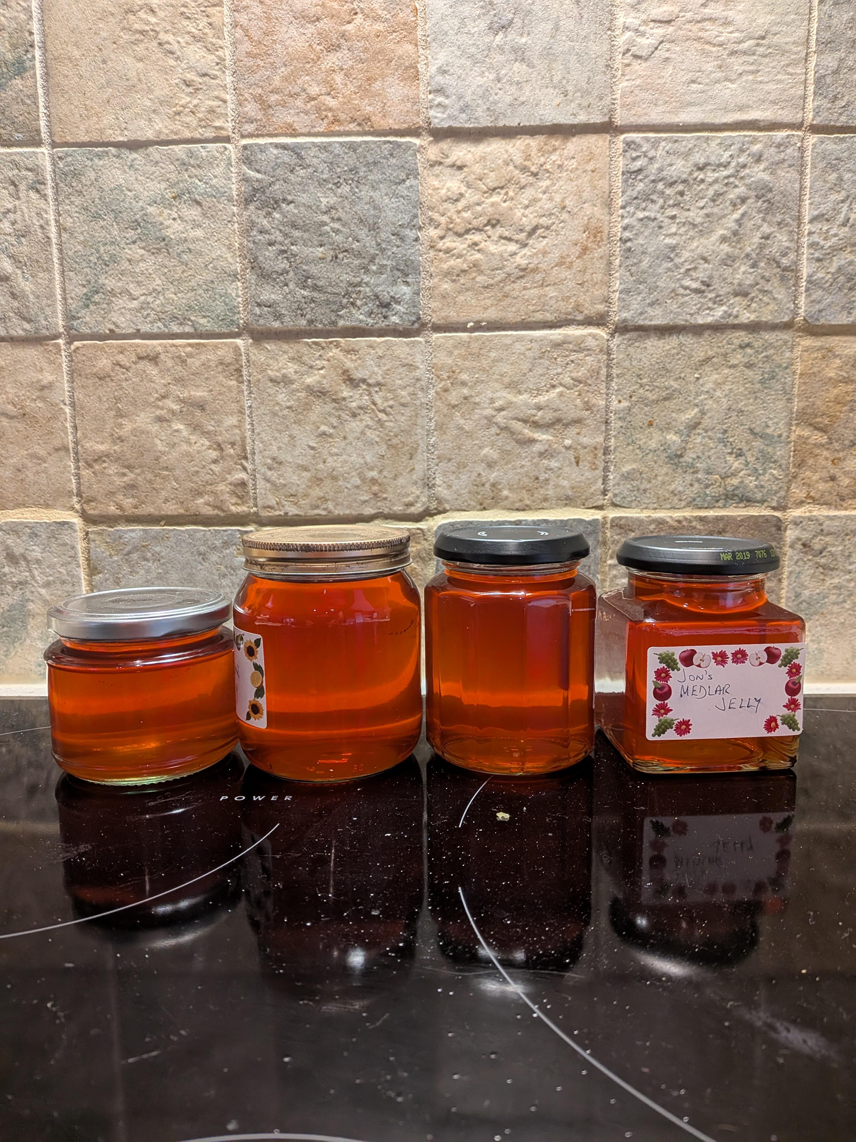 Looking good. You did better than me. I spent hours last night boiling it, trying to get a set. I gave up in the end as it was getting too late, and hoped for the best. Came down this morning to find 10 large jars of very runny stuff. Frustrating. Not sure if Meddlars are particularly hard to get a decent set with, but my strategy of trying to make a reduced sugar jam didn't help.
