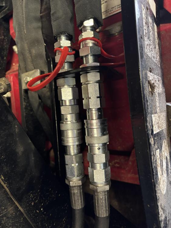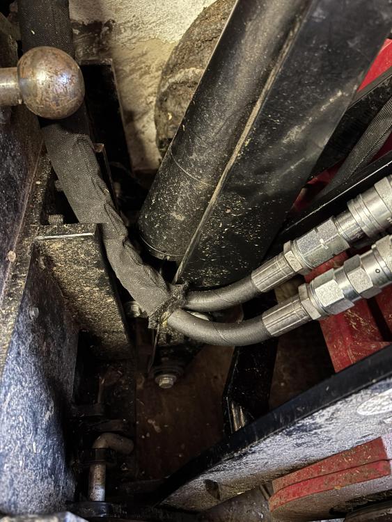 New hydraulic fittings fitted Apart from being shiny, they seem to work a lot better than the old ones, though I haven't used them in anger yet. They take up more space, the assembly is considerably longer than the old ones. The result of this is that in certain positions, the hydraulic hoses are on a quite tight angle. I'm guessing this is fine; it'll have to be. Ordered Manuli couplers from LS Engineers, and various adapters and washers from Burnett & Hillman.