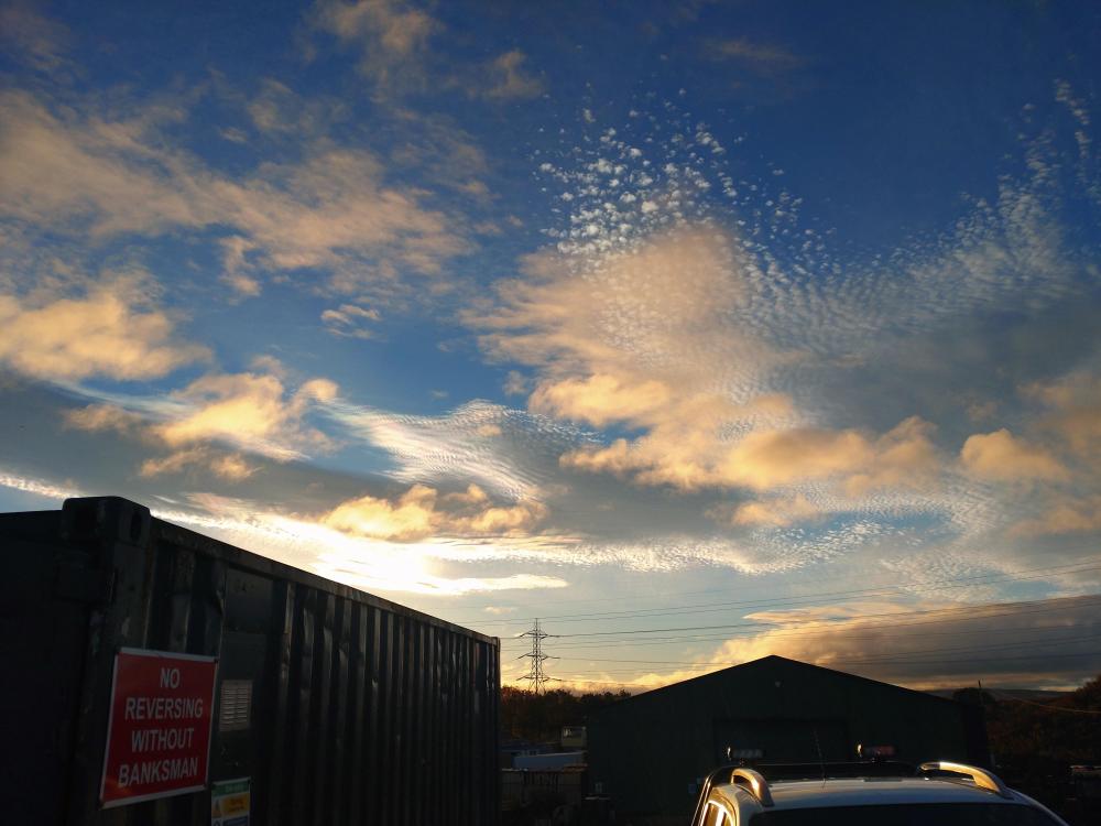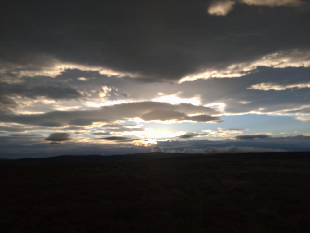 Well storm Amy settled entirely by 9am this morning and it was a t-shirt day thereafter, gorgeous. Saw some proper Mackerel clouds this morning in the yard. And not a bad sunset on the Moor either.