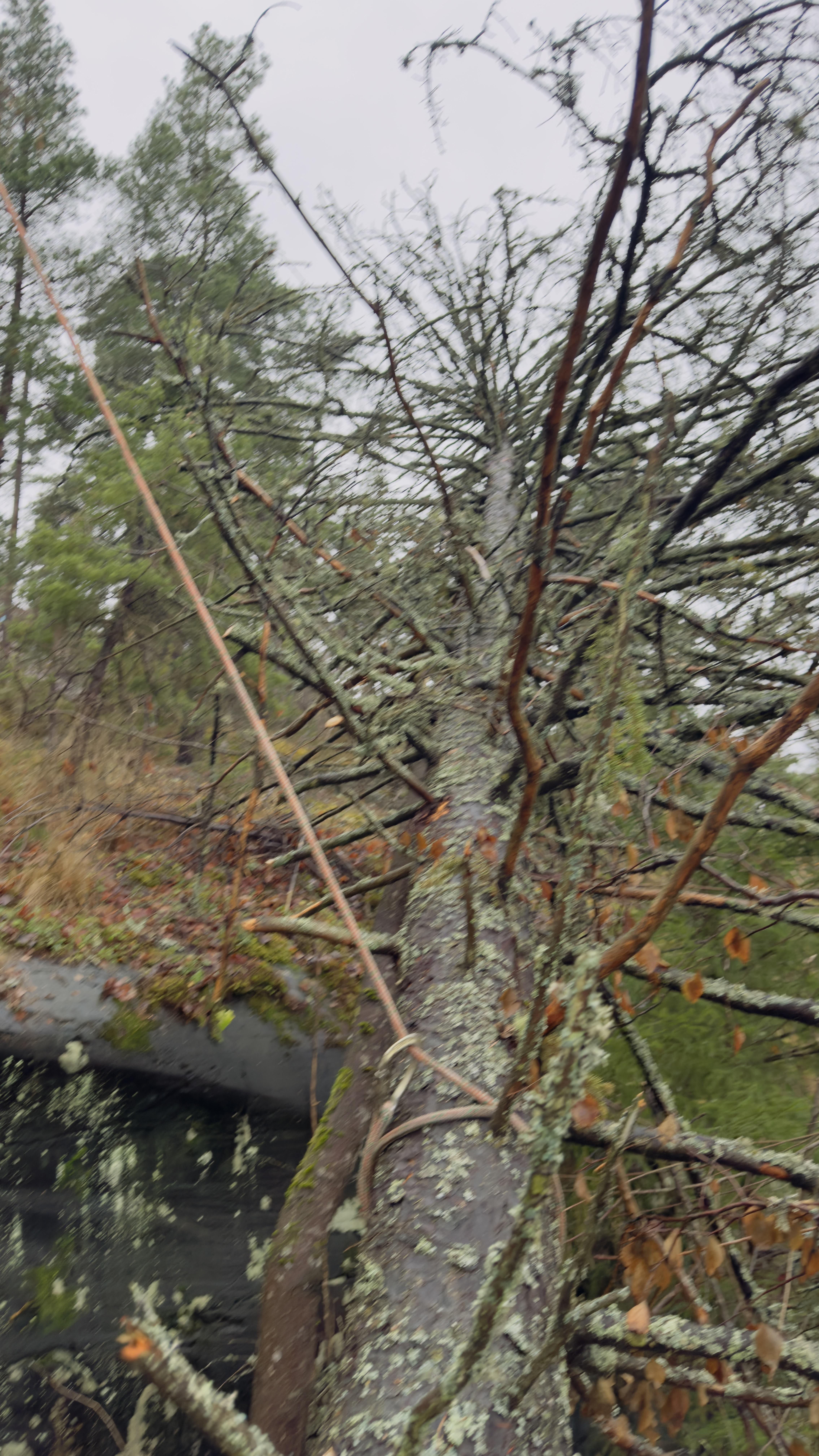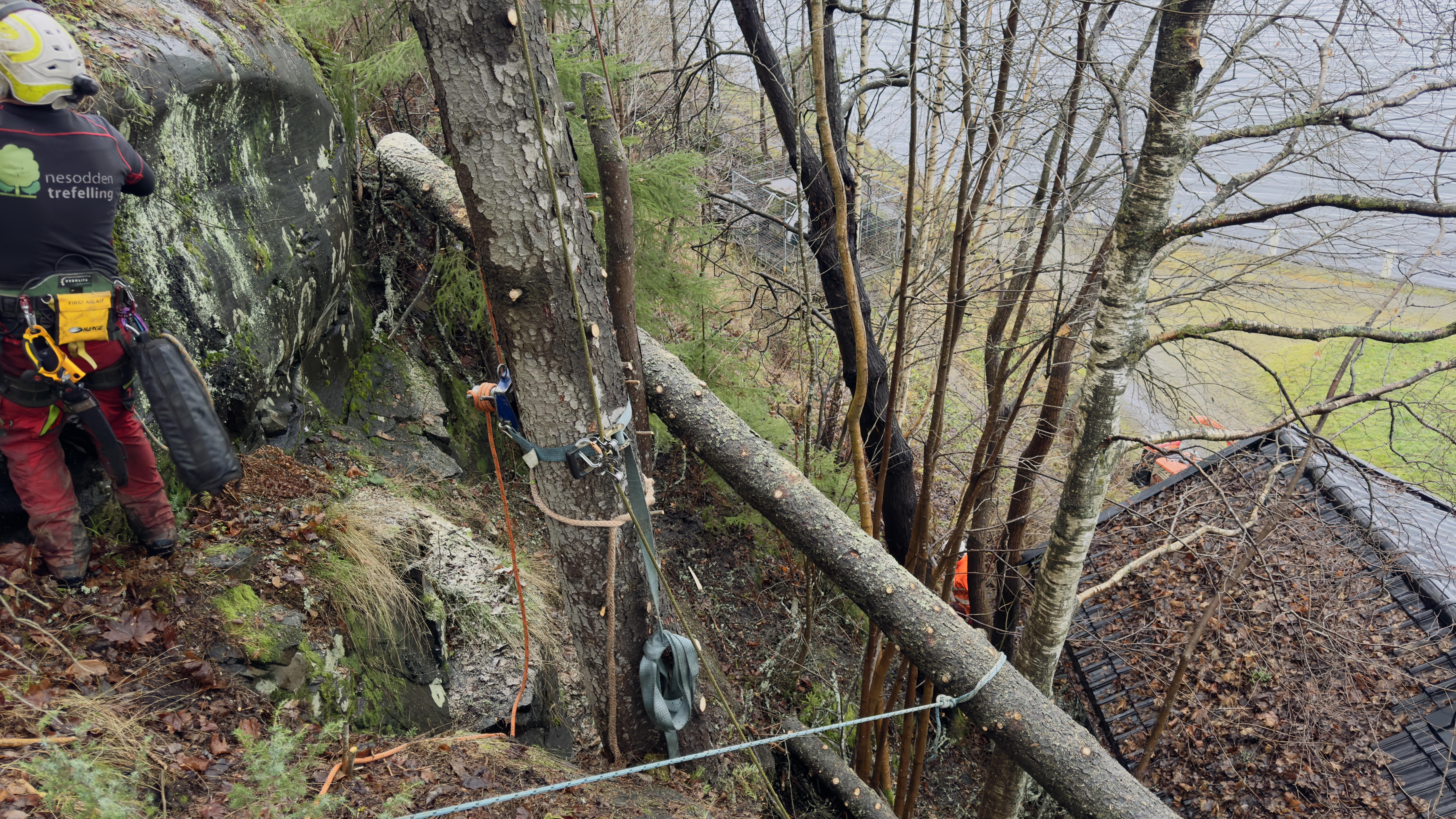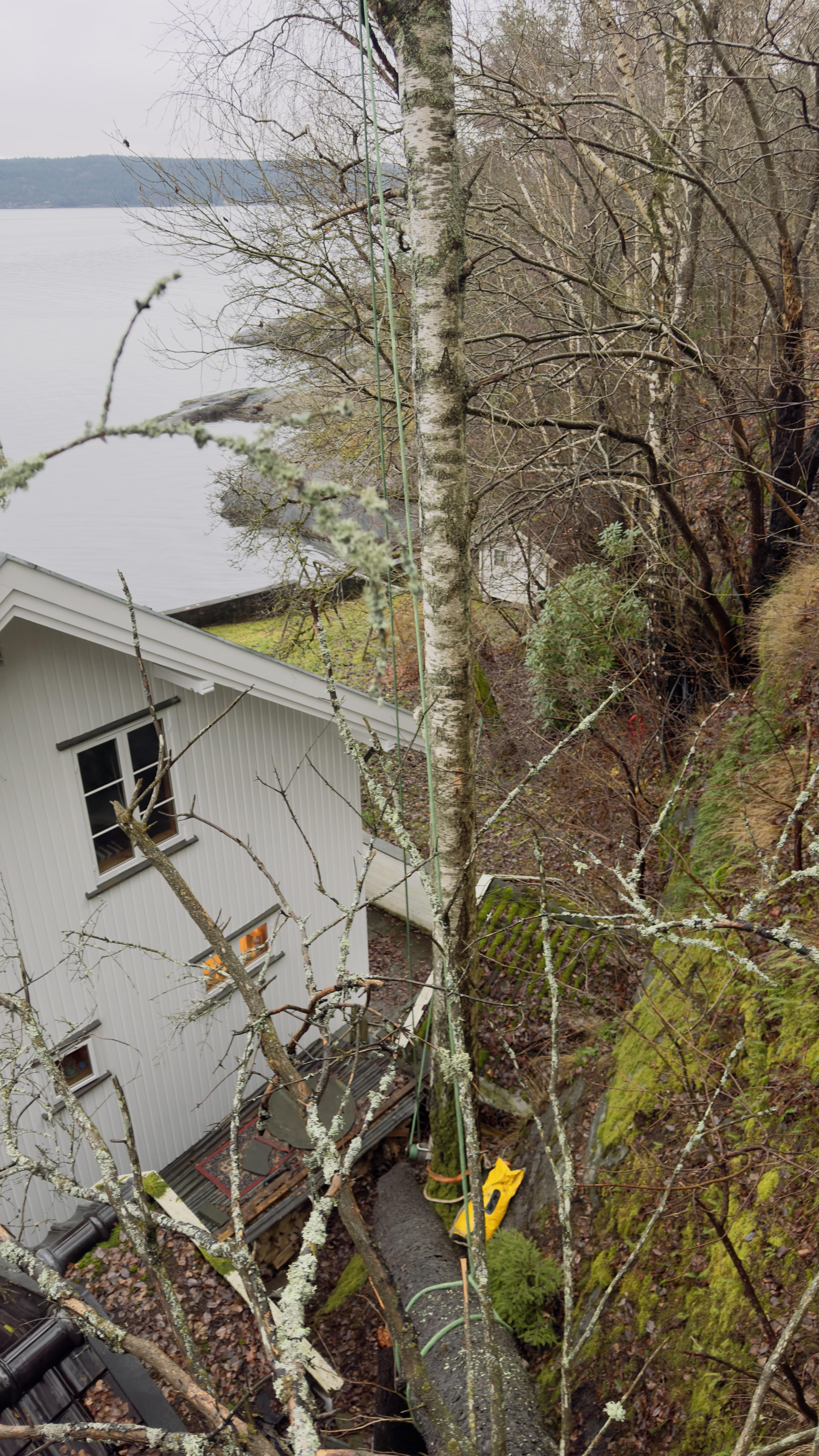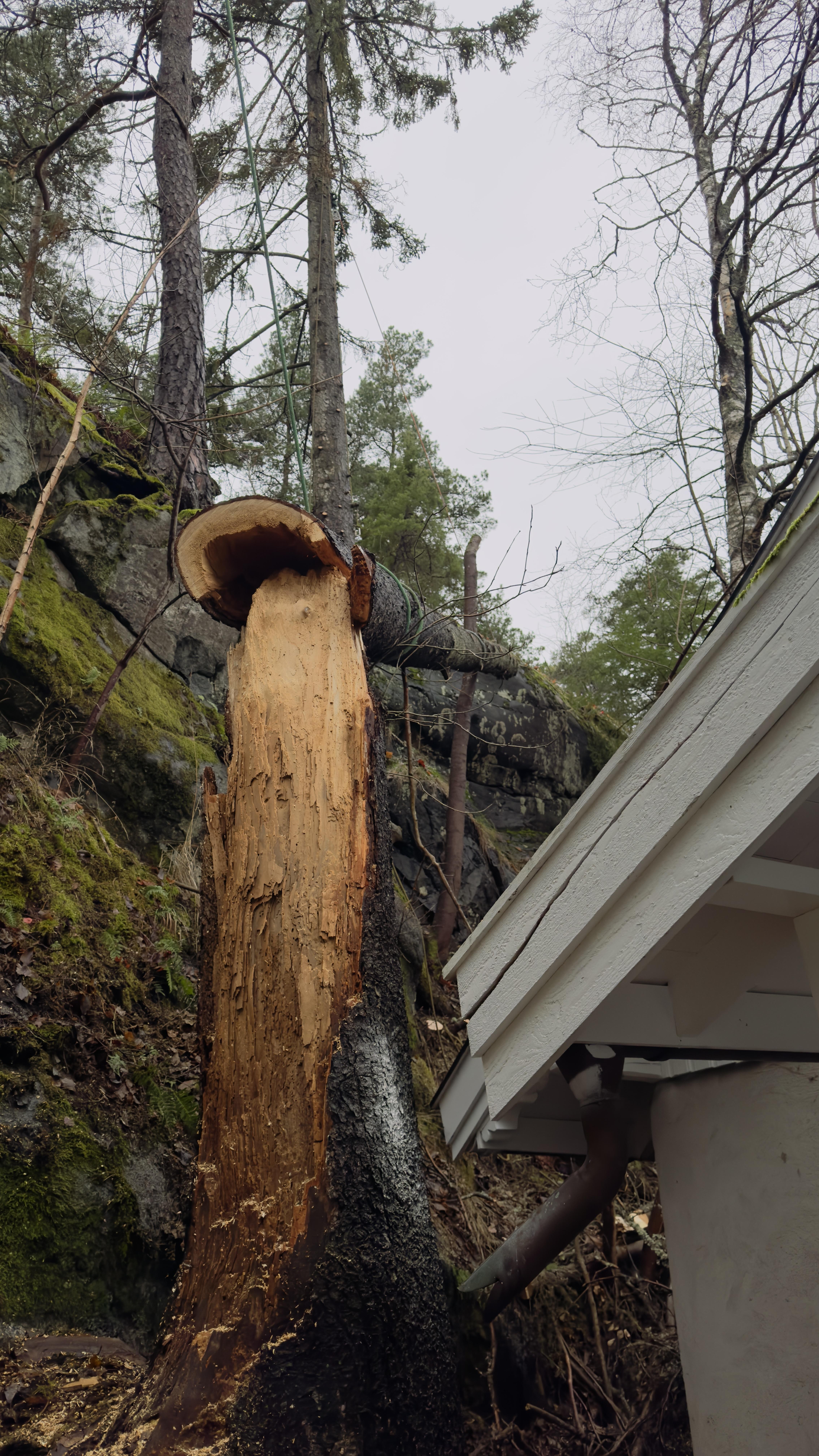 IMG_1719.mov Finally got round to a Bark Beetle death failure from Amy. Hung up and balance on a cliff over the corner of the property. 3 lowering devices, lots of rope, guy lines and stabilisers to stop it swinging j to the property when it went free. All done and clears with out damage.