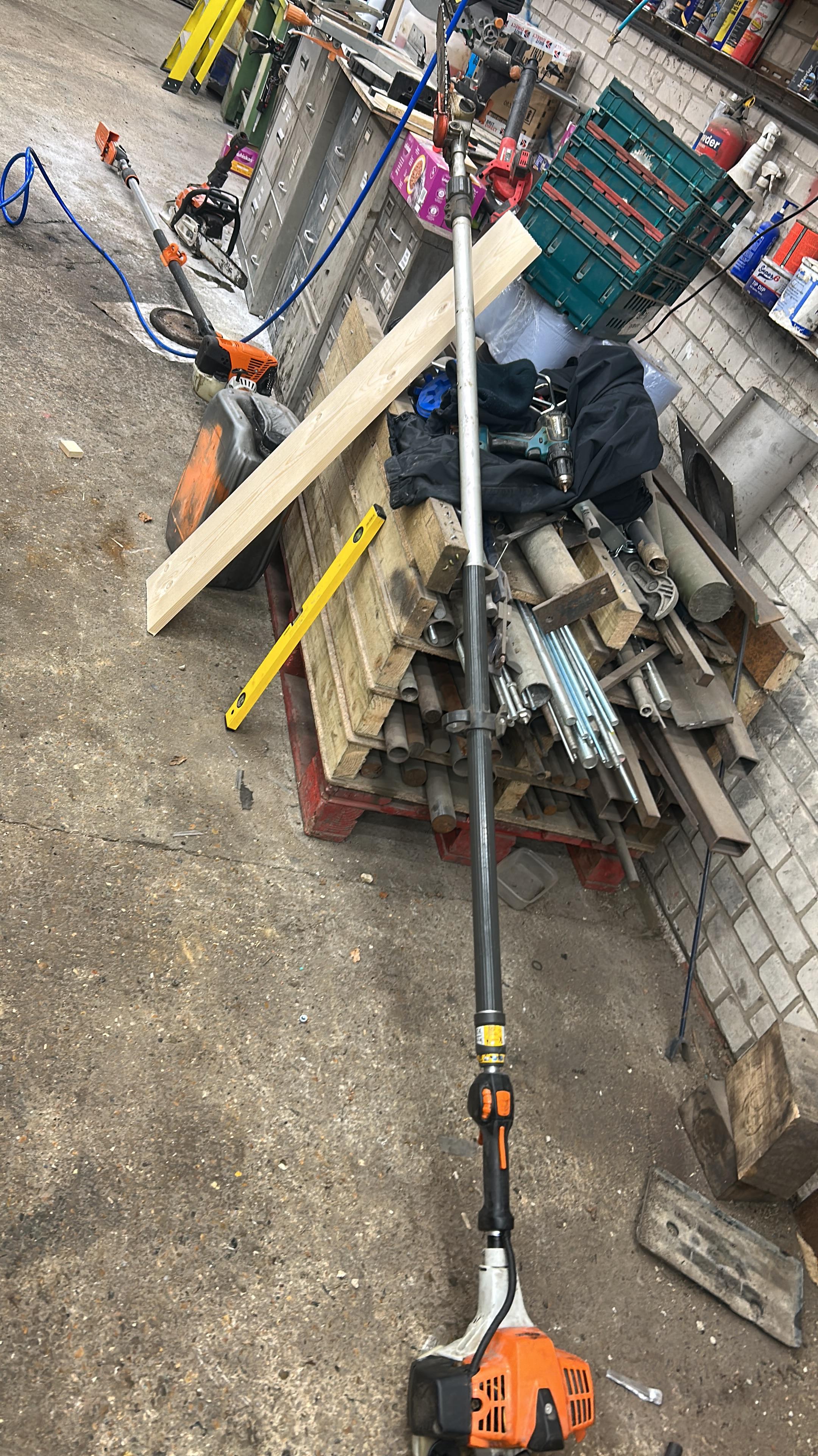 And regardless, the point is moot now. bloody Milwaukee m18 polesaw just stopped working. Packed it up and waiting for courier- they’d better sort it without quibble, it’s hardly been used. then the bar bent on the m18 chainsaw. Putting it in the vice and it’s like cheese compared to a stihl or Oregon I have here- luckily a 181 bar mount is the right fitment. But regarding the polesaw- turns out that with a bit of insulating tape to shim the tube up and a sand down of the driveshaft by 0.2mm, you can fit a stihl engine onto a husky polesaw shaft! So now I have a Stihl engine that is older than the polesaw on it, which I have every confidence in the reliability of. Time to treat myself to a new combi engine.