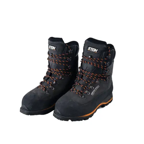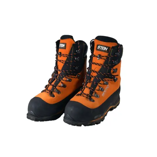 Stein Defender Max Chainsaw Boots - Class 2 - Orange - Size 43 (slightly used) Used for a day on a photoshoot The Stein Defender Max Chainsaw Boots bring together precision German engineering and premium materials to safeguard professional forestry and arborist crews. Featuring Class 2 (24 m/s) chainsaw cut resistance, a breathable waterproof membrane, and high-traction Vibram® TETON outsoles, these boots deliver unmatched protection, comfort, and durability in the harshest environments. Key Features EN ISO 17249:2014 Class 2 chainsaw protection (24 m/s) EN ISO 20345:2012 S3 certification (SB / P / E / HI / CI / WR / AN / WRU) Premium Perwanger® leather upper (2.5–2.6 mm) with water-repellent, breathable finish 360° rubber rand for abrasion resistance and knock protection around the lower boot D3O® side-impact armor for fibula safety during foot-ascender use Climate-regulating, waterproof membrane for moisture control Anatomical padding and padded tongue for all-day comfort 200 J steel toecap and penetration-resistant midsole Vibram® TETON outsole with self-cleaning, bi-directional lugs and asymmetrical heel for traction and secure braking Roller-bearing eyelets and double-riveted speed-lace system for a precision fit Materials & Construction Upper: Perwanger® leather (55 % polyamide/40 % polyurethane/5 % polyester blend) Lining: climate-regulating waterproof membrane Reinforcement: 360° rubber rand and D3O® impact panels Insole: anatomical cushioning with moisture-wicking properties Midsole: steel and anti-perforation plate Outsole: Vibram® TETON rubber Certified Safety Standards EN ISO 17249:2014 – Class 2 chainsaw cut protection EN ISO 20345:2012 S3 – Safety basic, penetration resistance, energy absorption, heat and cold insulation, water resistance, ankle support, water penetration/absorption Designed for Professional Forestry Work Built for ground crews and climbers facing extreme conditions, the Defender Max offers targeted cut protection, impact resistance, and underfoot stability. Whether you’re clearing timber or ascending with foot-ascenders, these boots ensure safety and performance from dawn till dusk.