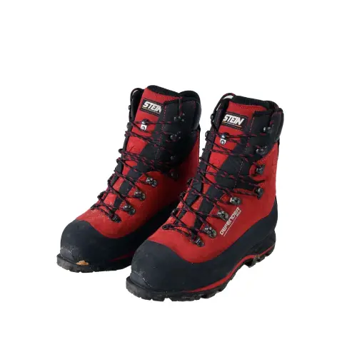 Stein Defender Max Chainsaw Boots - Class 2 - Red - Size 43 (slightly used) Used for a day on a photoshoot The Stein Defender Max Chainsaw Boots bring together precision German engineering and premium materials to safeguard professional forestry and arborist crews. Featuring Class 2 (24 m/s) chainsaw cut resistance, a breathable waterproof membrane, and high-traction Vibram® TETON outsoles, these boots deliver unmatched protection, comfort, and durability in the harshest environments. Key Features EN ISO 17249:2014 Class 2 chainsaw protection (24 m/s) EN ISO 20345:2012 S3 certification (SB / P / E / HI / CI / WR / AN / WRU) Premium Perwanger® leather upper (2.5–2.6 mm) with water-repellent, breathable finish 360° rubber rand for abrasion resistance and knock protection around the lower boot D3O® side-impact armor for fibula safety during foot-ascender use Climate-regulating, waterproof membrane for moisture control Anatomical padding and padded tongue for all-day comfort 200 J steel toecap and penetration-resistant midsole Vibram® TETON outsole with self-cleaning, bi-directional lugs and asymmetrical heel for traction and secure braking Roller-bearing eyelets and double-riveted speed-lace system for a precision fit Materials & Construction Upper: Perwanger® leather (55 % polyamide/40 % polyurethane/5 % polyester blend) Lining: climate-regulating waterproof membrane Reinforcement: 360° rubber rand and D3O® impact panels Insole: anatomical cushioning with moisture-wicking properties Midsole: steel and anti-perforation plate Outsole: Vibram® TETON rubber Certified Safety Standards EN ISO 17249:2014 – Class 2 chainsaw cut protection EN ISO 20345:2012 S3 – Safety basic, penetration resistance, energy absorption, heat and cold insulation, water resistance, ankle support, water penetration/absorption Designed for Professional Forestry Work Built for ground crews and climbers facing extreme conditions, the Defender Max offers targeted cut protection, impact resistance, and underfoot stability. Whether you’re clearing timber or ascending with foot-ascenders, these boots ensure safety and performance from dawn till dusk.