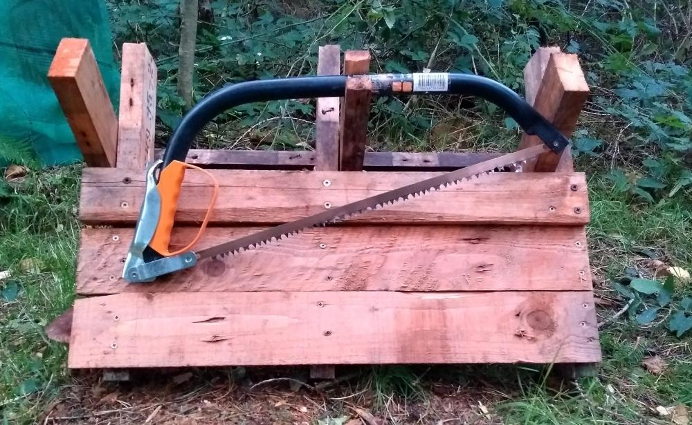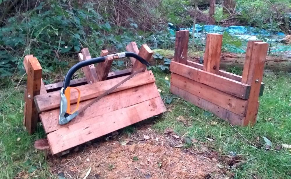 Not worth its own post, but spent yesterday making up half dozen of these for the local community woodland groups kids - scrap pallets, 3 left over bolts and a handful of screws. Folding saw horses so the kids keep their fingers protected from the saw blades a little.