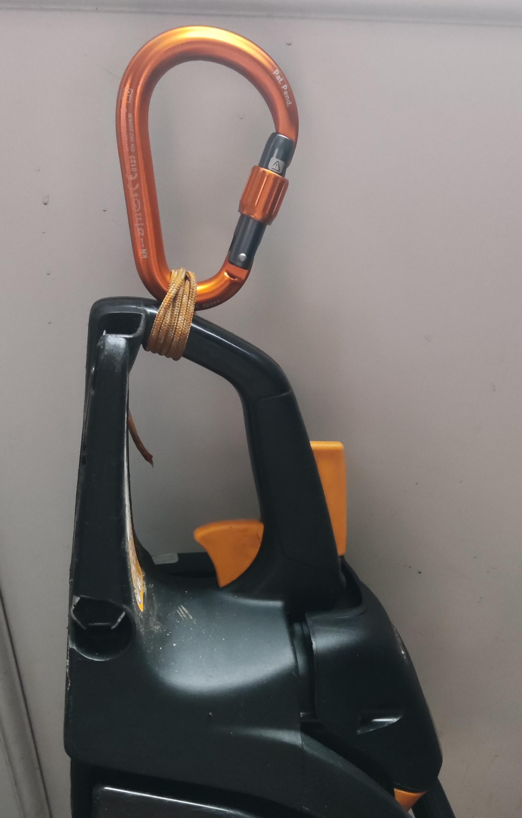 Another idea is a biner could be tied in that orientation, no need to buy a twisted. This is 3mm starter cord, 4mm might be better. Barrel knot, get it tight and add a barrel stopper. Carabiner easily unclipped when not needed. Going to leave this tied and add one to my other ground saws.