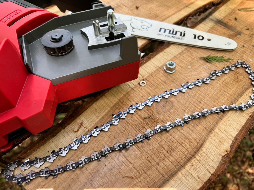 You want this - one of these bars and chains here: Panther mini bars for Echo - Chainsawbars WWW.CHAINSAWBARS.CO.UK One of these sprockets: T9-198259-2 Carving Spur Sprocket 1/4 x9 tooth for Makita WWW.CHAINSAWBARS.CO.UK Carving Sprocket 1/4 x9 tooth [Makita XCU03, XCU04, XCU06, DUC303, DUC353, DUC254s, DUC256s, DUC305s, DUC306s... You can also try a full chisel chain here: Tsumura 1/4 .043 Black Edition - Chainsawbars WWW.CHAINSAWBARS.CO.UK It transforms the saw... I wonder if Milwalkee will catch on 20% off arbtalk discount only use the Coupon MILK at checkout. This cannot be applied retrospectively ie. 'Hey I bought a bar and chain last week but saw you were doing a deal on arbtalk - can I get that discount applied?'