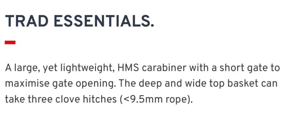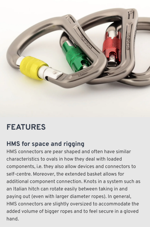 Incorrect, you describe an offset D which is the opposite of an HMS. Rhino and phantom are both HMS carabiners. Halbmastwurf sicherung translates as Munter hitch belay carabiner. Halb= half, mastwurf = mast hitch, sicherung = belay. From the Shadow HMS Note the last line, its designed to take three clove hitches. The slight asymmetry will not cause any problems.