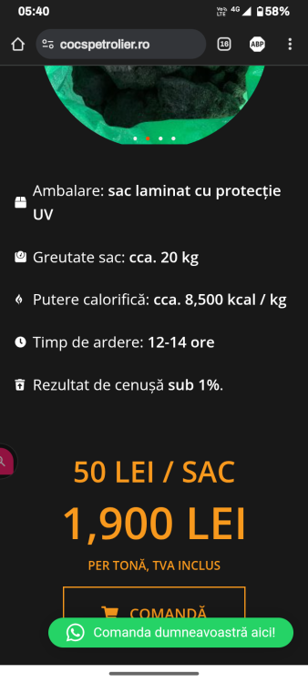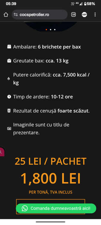 2. petroleum coke is tempting and some smaller suppliers do sell it by the ton(around 400 euros) but the quality is debateable as is sulphur content... It's not the same as from big suppliers who actually make it in their own refinery like Rompetrol... Although at 8.7 to 9.8 Kwh per kg ,its more than enough for a small stove 😂 See for yourself Packaging is 13kg or 20 kg bags. Burn time (their statement/word) 10-12 hours... Better than coal briquettes, nevermind oak or wood briquettes...