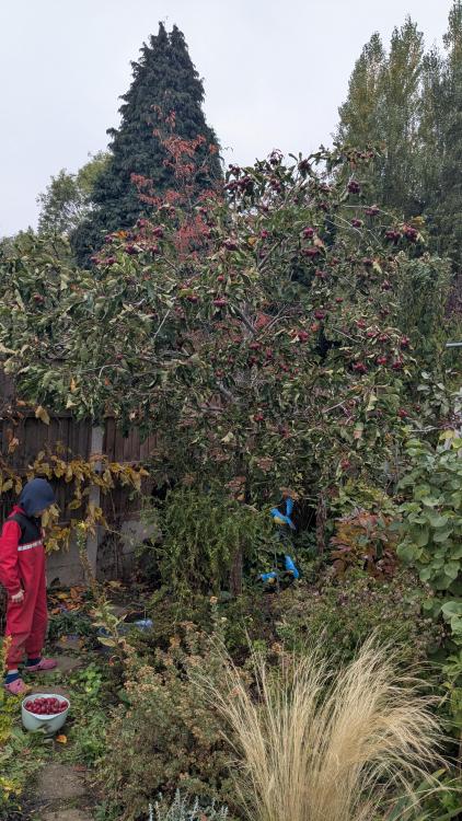Never thought of bird cherry - that might go in the mix near the road side with silver birch, that would work with sycamore further from the road. Tried a few types of apples a few years ago till I disturbed a very fat looking deer sleeping under its supper, however there is a sea of brambles for protection now.