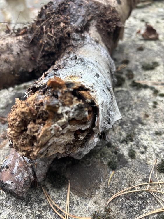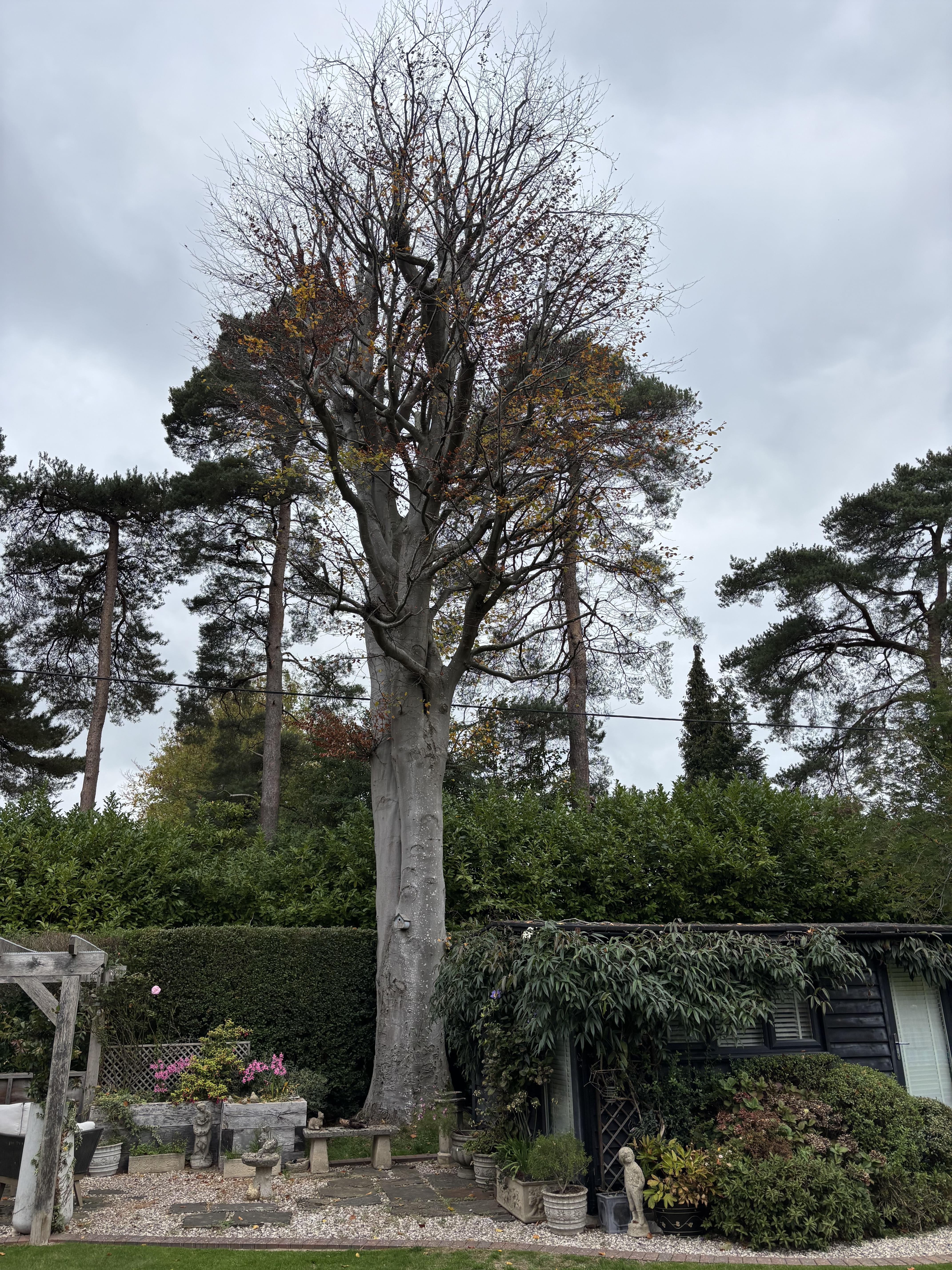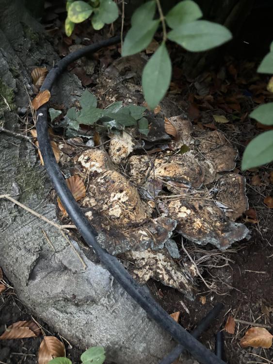 Hi. I have a large mature beech tree in the garden that repeatedly grows enormous fungus around the base and locally in the ground. I remove them due to having a blind spaniel and don’t want him walking through them. A piece of root pulled away (easily) too. The tree is also covered in white spots all over the bark. Pics attached. can anyone help with diagnosis please? Root rot? Bark disease? many thanks.