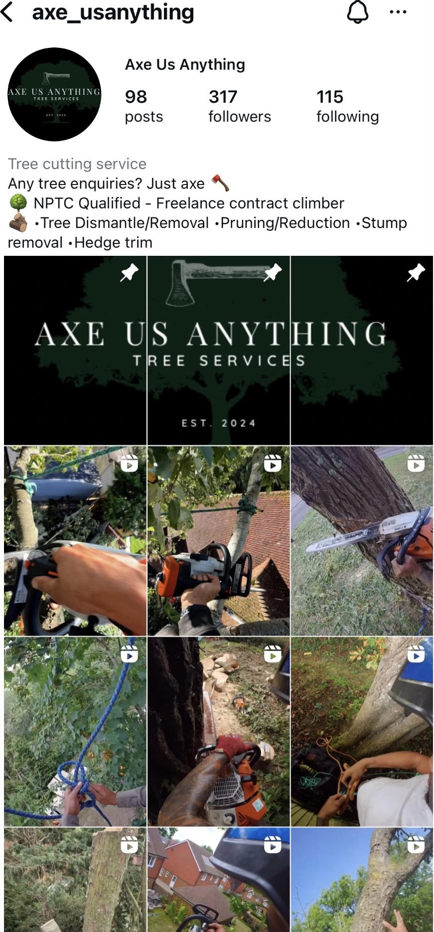 Have lots of varied experience climbing. Large and small. Rigging and pruning. Domestic and commercial, EA to councils etc.