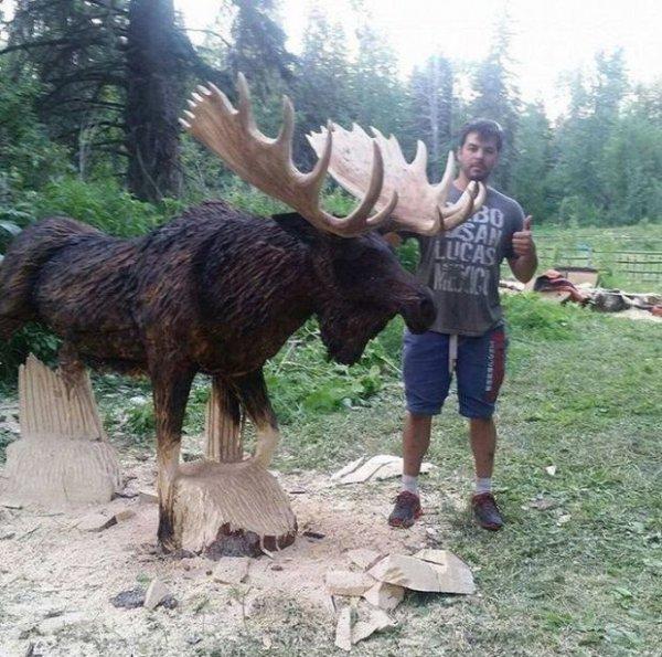 I once made an old stump into a big toadstool for a couple after felling a tree for them, they were happy enough, even painted it to look more realistic, but that moose is off the scale.