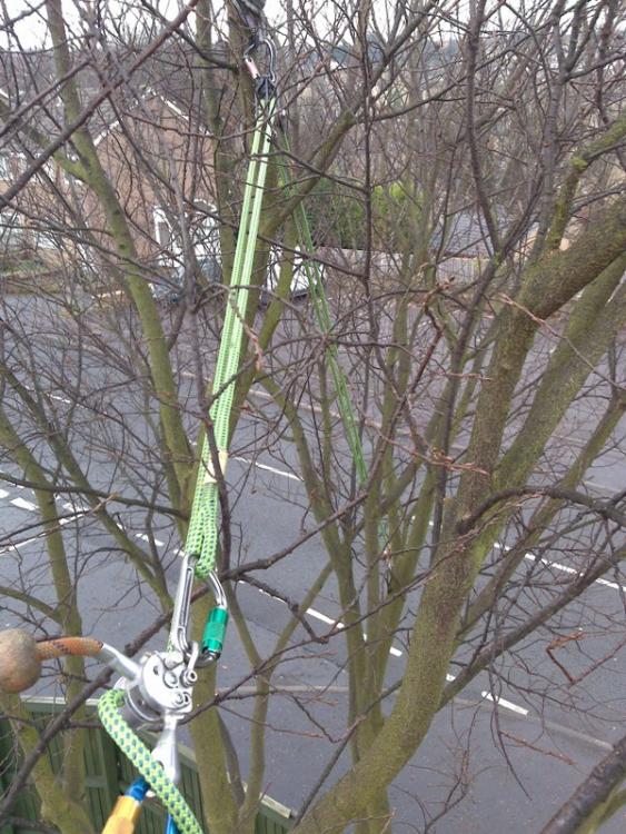 thats exactly what i meant dean. for the record im not advocating this technique. its a method i chose to use on one particular tree as the ease with which it enabled me to carry out the work far outweighed the minimal risk(in my estimation) of redirecting my anchor point in this way. I certainly wouldnt recommend this technique to a new climber as there is too much to assess as well as a sound understanding of structural properties of the wood in question.