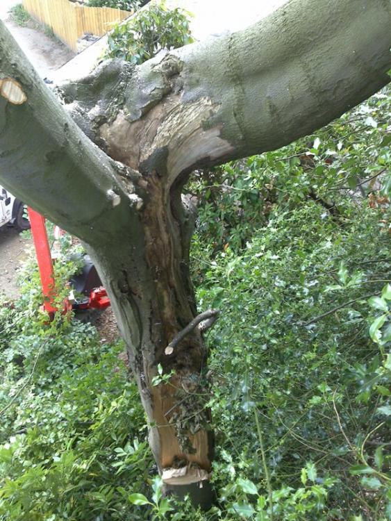 Did this Beech yesterday as an emergency call out, lost a large limb which fell onto next doors car. I went out and set the mewp up sunday and had a quick look.