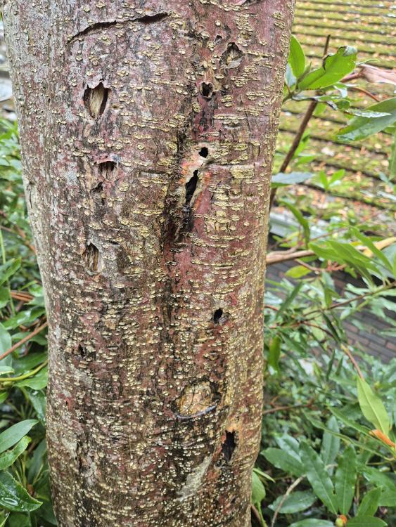 1. Holly tree down here in Dorset, generally not in fantastic nick and more recently found increasing holes in the bark going up from the base of the trunk. Tree is within a wider wooded area with your typical woodland friends. Any thoughts on what the cause is, and does this spell the end for poor Holly?