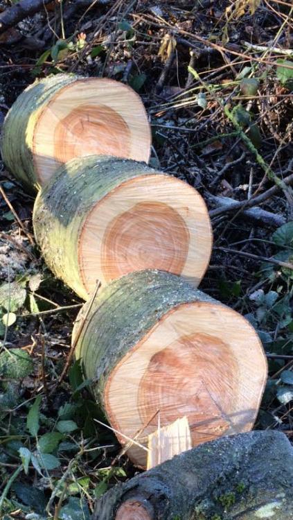 21. Funny enough I have just dealt with wind blowen cherry tree 16 inch in diameter. Tree was leaning against other three trees but roots were still in ground and it was alive. I have cut 5 cylinders to make four stools and coffe table. I still have two ther learners which need sorting.